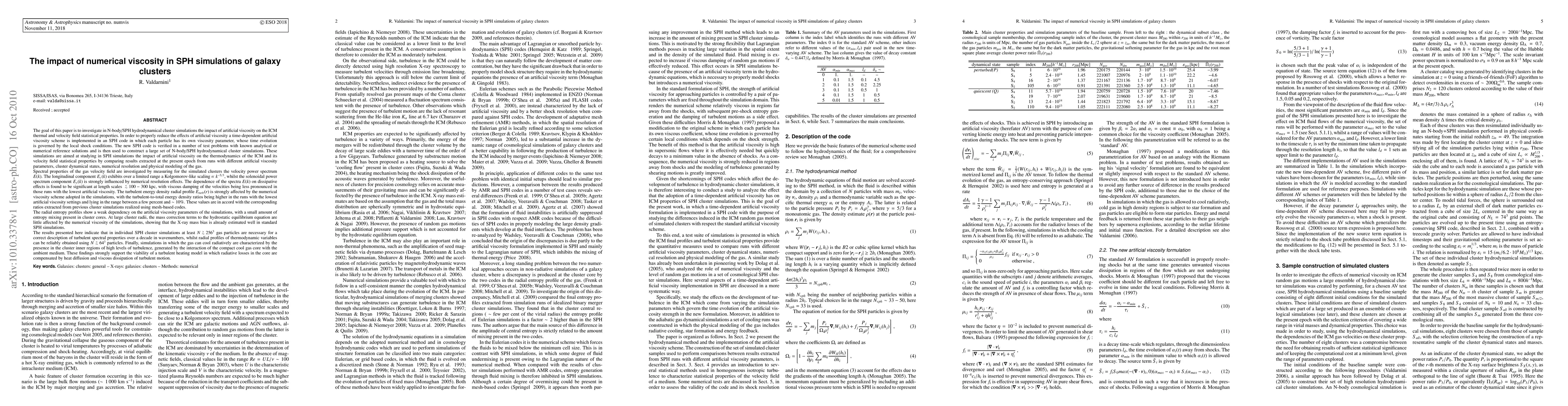This study investigates the impact of numerical viscosity in Smoothed Particle Hydrodynamics (SPH) simulations of galaxy clusters, revealing that artificial viscosity significantly affects the thermodynamics of the intracluster medium (ICM) and the velocity field's statistical properties. The turbulent energy density profiles show higher ratios in simulations with lower artificial viscosity, aligning with mesh-based codes, while mass correction terms remain largely unaffected.