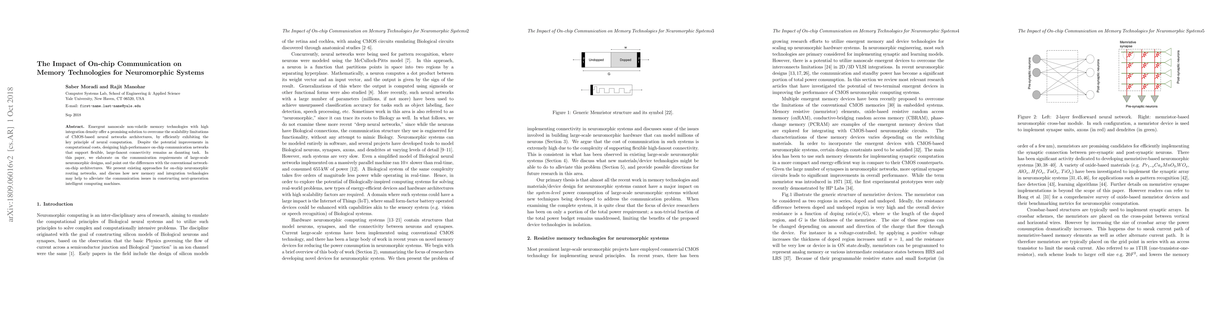 This paper explores the challenges of on-chip communication in neuromorphic systems, emphasizing the need for scalable, high-performance networks to support large-scale neural architectures. It discusses how emerging non-volatile memory technologies could help address these communication issues and improve the efficiency of next-generation intelligent computing systems.