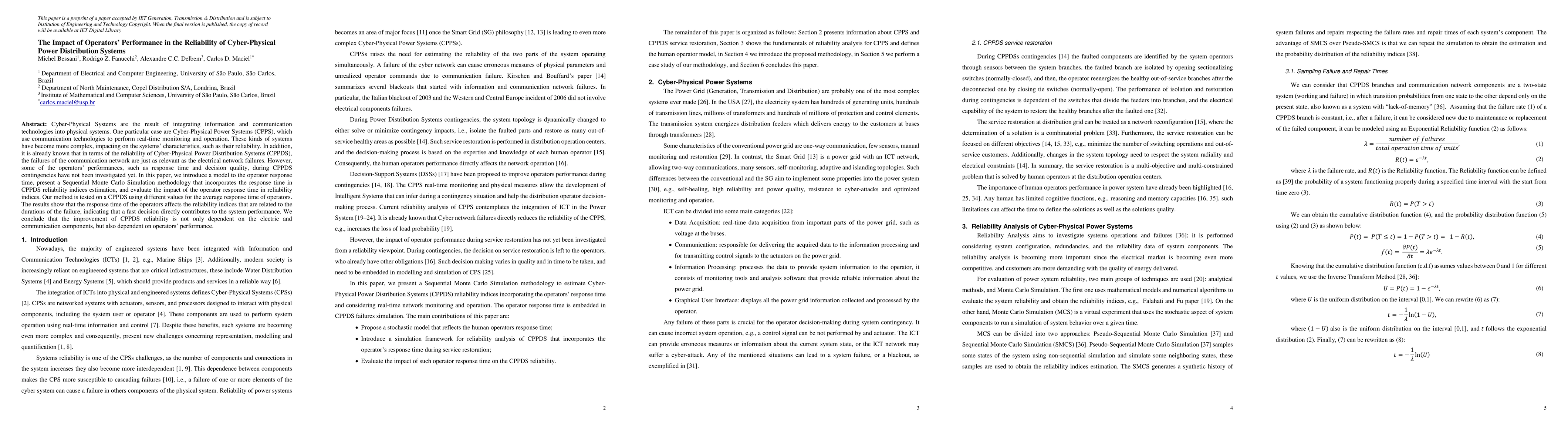 This paper introduces a model for operator response time and uses a Sequential Monte Carlo Simulation to assess its impact on the reliability of Cyber-Physical Power Distribution Systems. Results indicate that faster operator decision-making directly enhances system performance, highlighting that reliability depends on both technical components and operator performance.