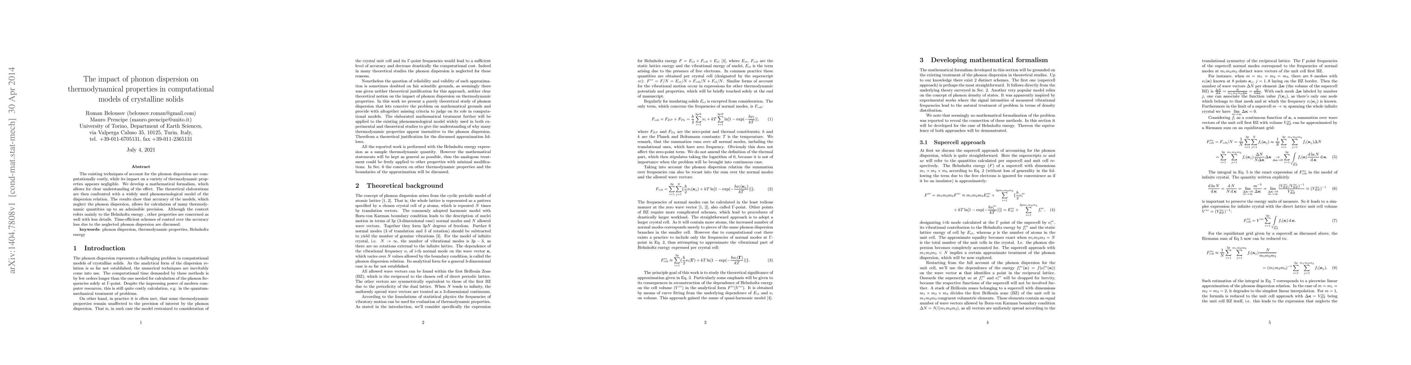 The existing techniques of account for the phonon dispersion are computationally costly, while its impact on a variety of thermodynamic properties appears negligible. We develop a mathematical formalism, which allows for clear understanding of the effect. The theoretical elaborations are then confronted with a widely used phenomenological model of the dispersion relation. The results show that accuracy of the models, which neglect the phonon dispersion, allows for calculation of many thermodynamic quantities up to an admissible precision. Although the context refers mainly to the Helmholtz energy , other properties are concerned as well with less details. Time-efficient schemes of control over the accuracy loss due to the neglected phonon dispersion are discussed.
