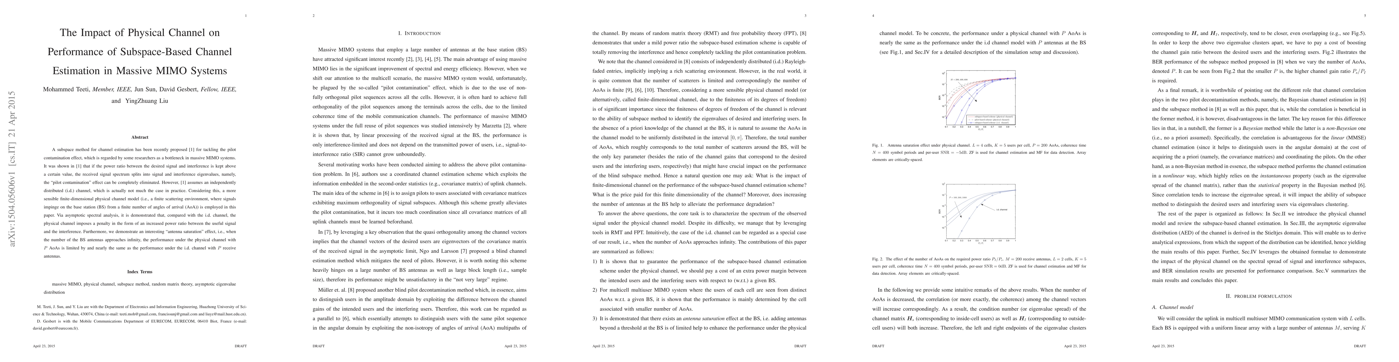 This paper explores how a physical channel model affects performance in subspace-based channel estimation for massive MIMO systems, finding that the physical channel imposes penalties and limits performance as the number of antennas approaches infinity.