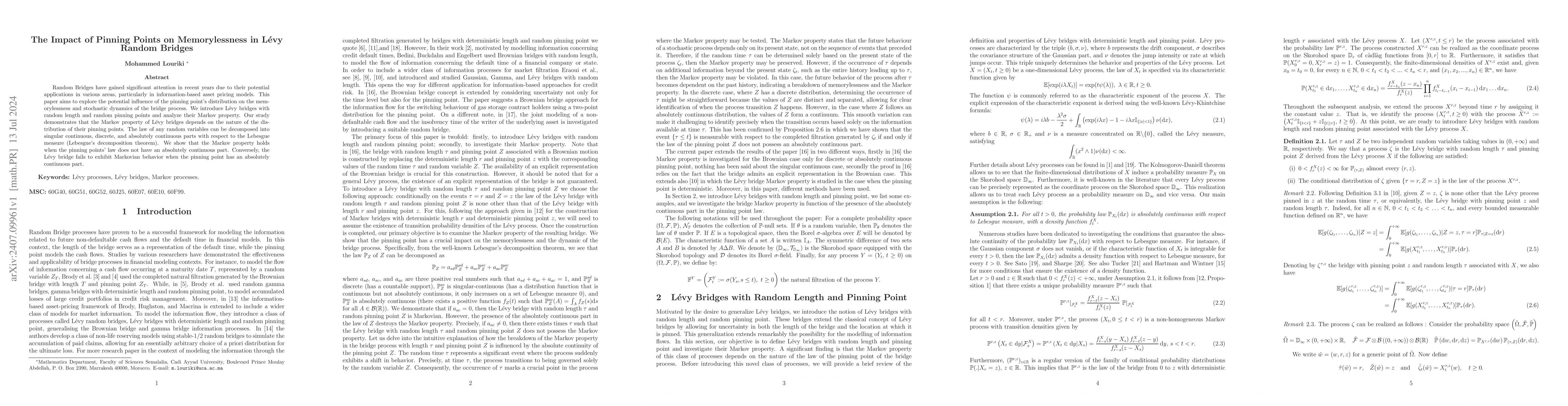 Random Bridges have gained significant attention in recent years due to their potential applications in various areas, particularly in information-based asset pricing models. This paper aims to explore the potential influence of the pinning point's distribution on the memorylessness and stochastic dynamics of the bridge process. We introduce L\'evy bridges with random length and random pinning points and analyze their Markov property. Our study demonstrates that the Markov property of L\'evy bridges depends on the nature of the distribution of their pinning points. The law of any random variables can be decomposed into singular continuous, discrete, and absolutely continuous parts with respect to the Lebesgue measure (Lebesgue's decomposition theorem). We show that the Markov property holds when the pinning points' law does not have an absolutely continuous part. Conversely, the L\'evy bridge fails to exhibit Markovian behavior when the pinning point has an absolutely continuous part.
