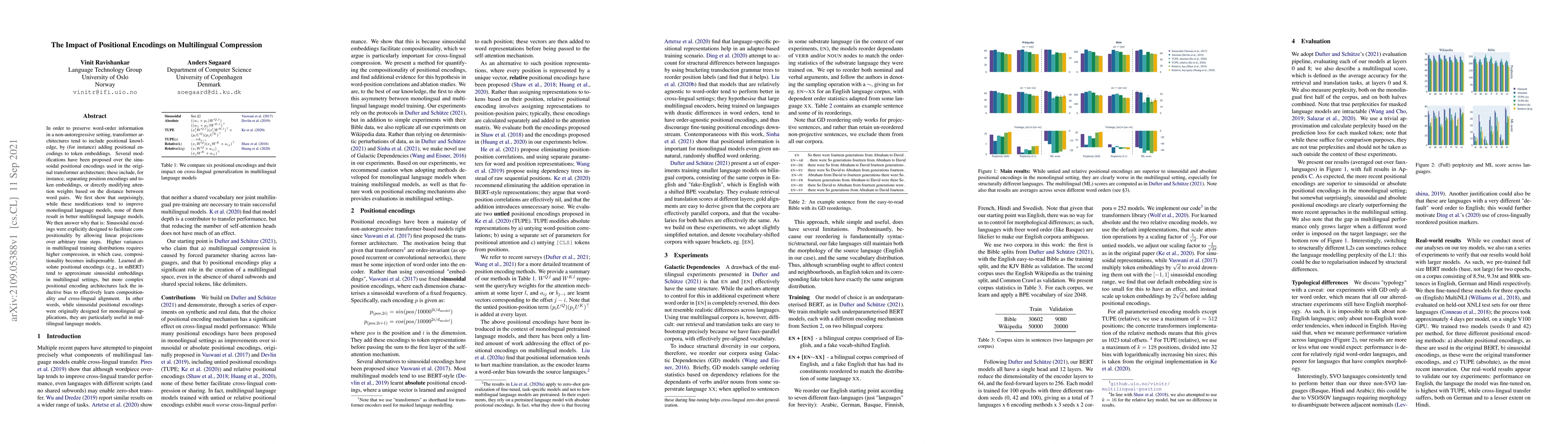 This paper investigates the effectiveness of various positional encoding methods in multilingual compression, finding that sinusoidal encodings, originally designed for monolingual tasks, are superior for multilingual models due to their ability to facilitate compositionality and cross-lingual alignment. Complex alternatives fail to achieve better performance in multilingual settings.
