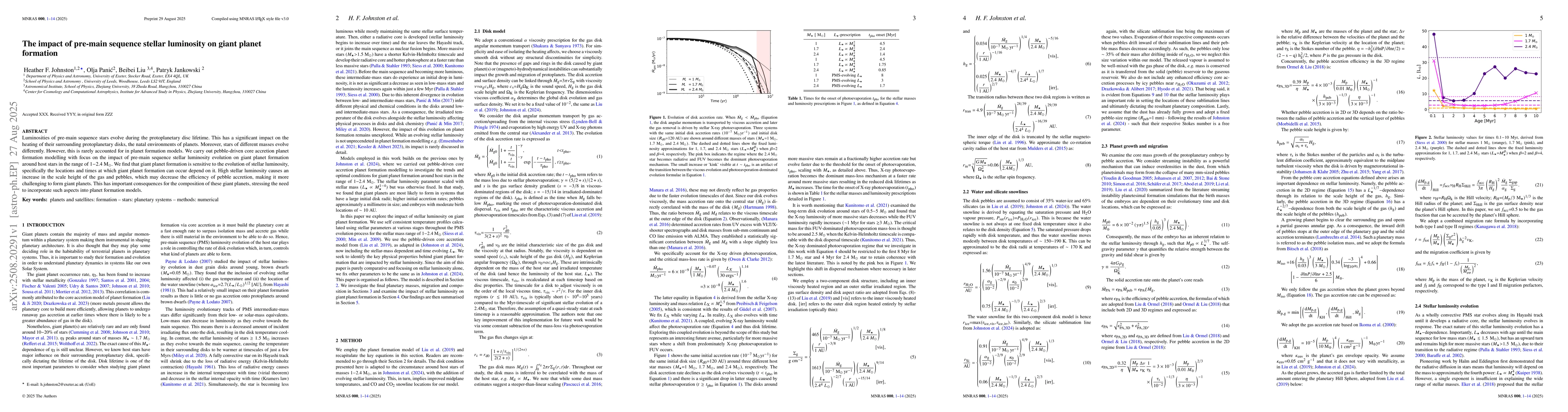 Luminosities of pre-main sequence stars evolve during the protoplanetary disc lifetime. This has a significant impact on the heating of their surrounding protoplanetary disks, the natal environments of planets. Moreover, stars of different masses evolve differently. However, this is rarely accounted for in planet formation models. We carry out pebble-driven core accretion planet formation modelling with focus on the impact of pre-main sequence stellar luminosity evolution on giant planet formation around host stars in the range of $1{-}2.4\ \rm M_{\odot}$. We find that giant planet formation is sensitive to the evolution of stellar luminosity, specifically the locations and times at which giant planet formation can occur depend on it. High stellar luminosity causes an increase in the scale height of the gas and pebbles, which may decrease the efficiency of pebble accretion, making it more challenging to form giant planets. This has important consequences for the composition of these giant planets, stressing the need to incorporate such aspects into planet formation models.