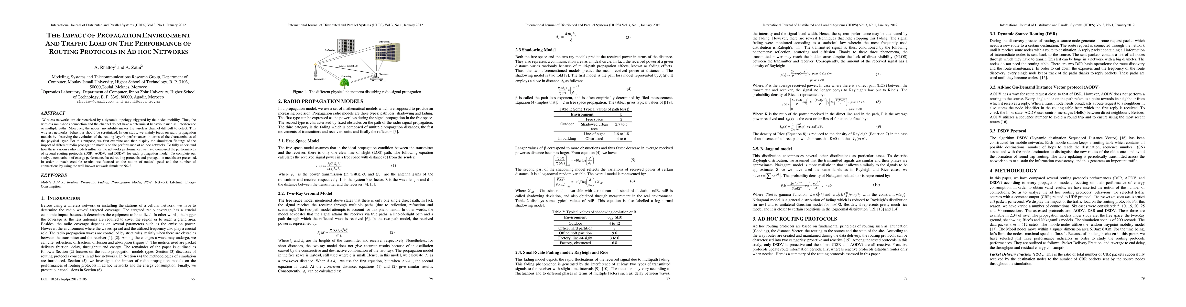 This study examines the influence of radio propagation models on ad hoc network routing protocol performance using NS-2 simulator. It compares DSR, AODV, and DSDV protocols under varying speed and connection conditions, revealing significant impacts of propagation models on network efficiency and energy consumption.