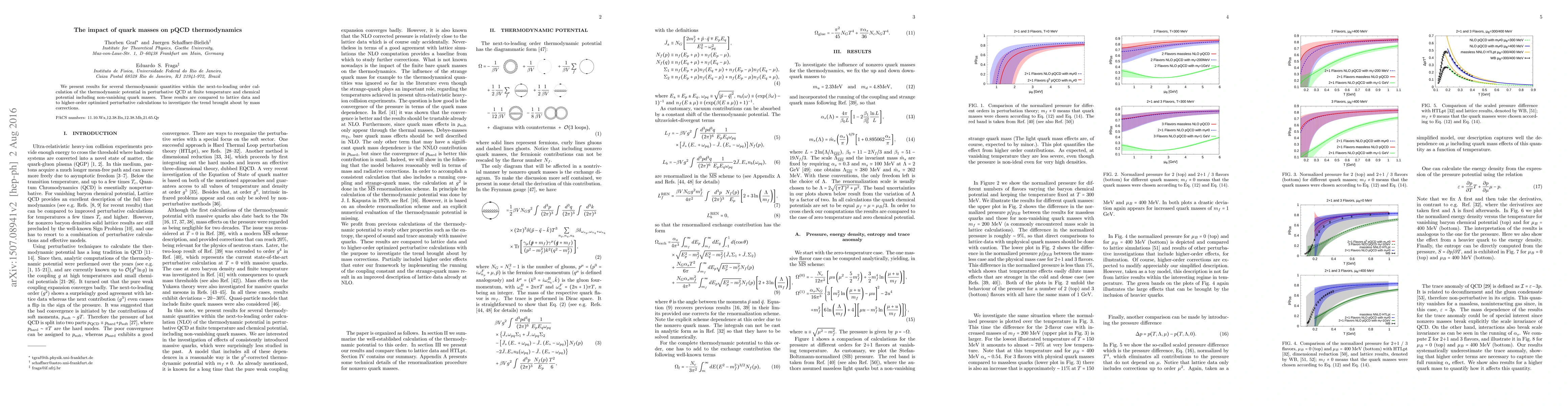 We present results for several thermodynamic quantities within the next-to-leading order calculation of the thermodynamic potential in perturbative QCD at finite temperature and chemical potential including non-vanishing quark masses. These results are compared to lattice data and to higher-order optimized perturbative calculations to investigate the trend brought about by mass corrections.