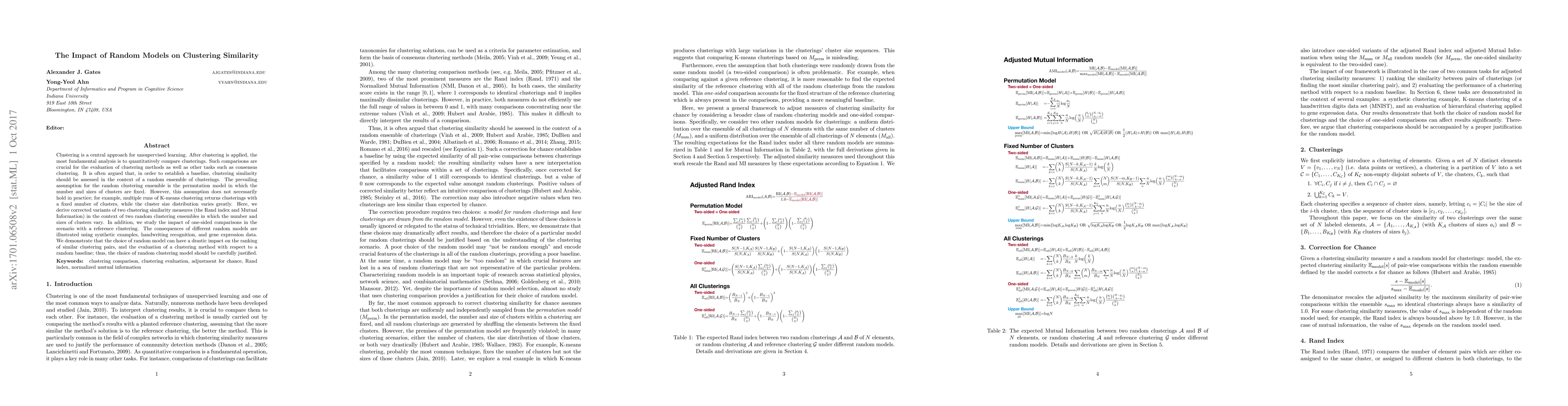 Researchers developed new clustering similarity measures to account for varying cluster sizes in random ensembles, finding that the choice of model can drastically impact ranking and evaluation of clustering methods.