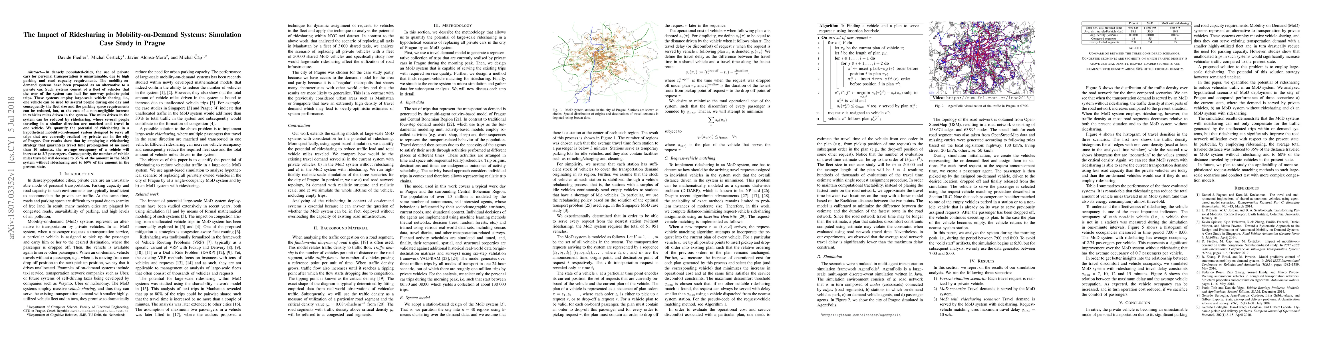 This study evaluates the impact of ridesharing in mobility-on-demand systems in Prague, showing that implementing a ridesharing strategy can reduce vehicle miles traveled by 35% compared to a non-ridesharing system, while increasing average vehicle occupancy to 2.7 passengers.