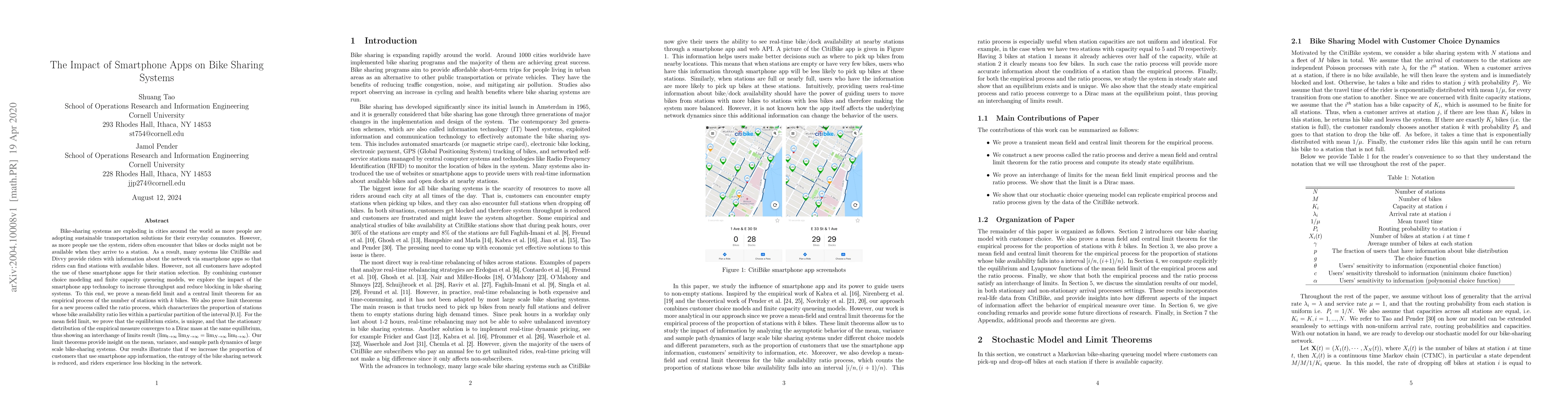 This paper explores how smartphone apps impact bike-sharing systems by modeling the effect on bike availability and rider blocking. It demonstrates that increased app usage leads to reduced entropy and less blocking, supported by mean-field and central limit theorems for bike availability metrics.