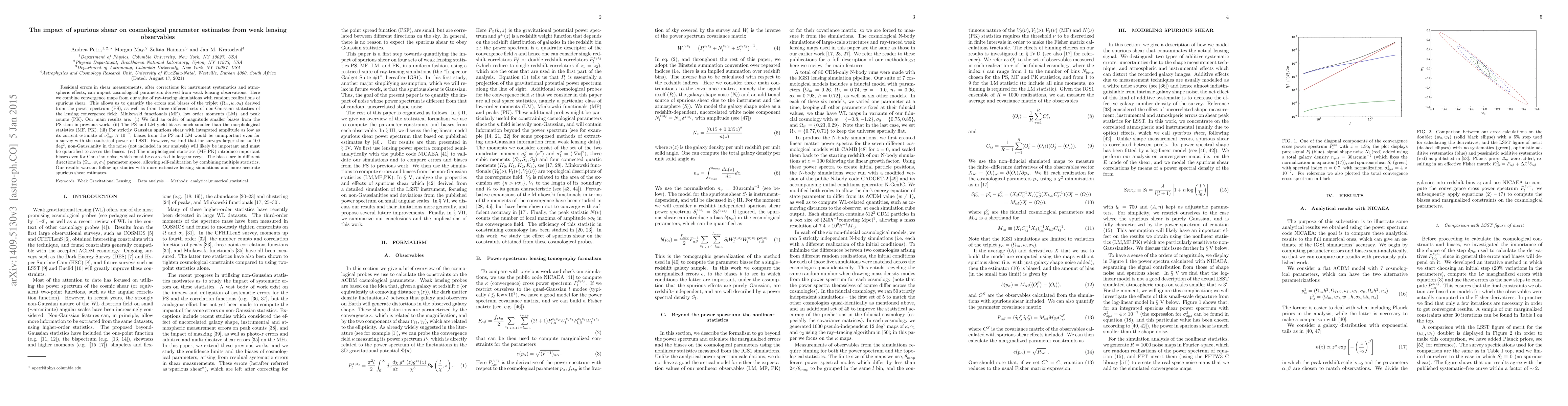 This paper investigates the impact of spurious shear on cosmological parameter estimates from weak lensing data, finding that biases from the power spectrum and low-order moments are significantly smaller than those from morphological statistics. It highlights the need for further studies to quantify non-Gaussian noise effects in larger surveys.