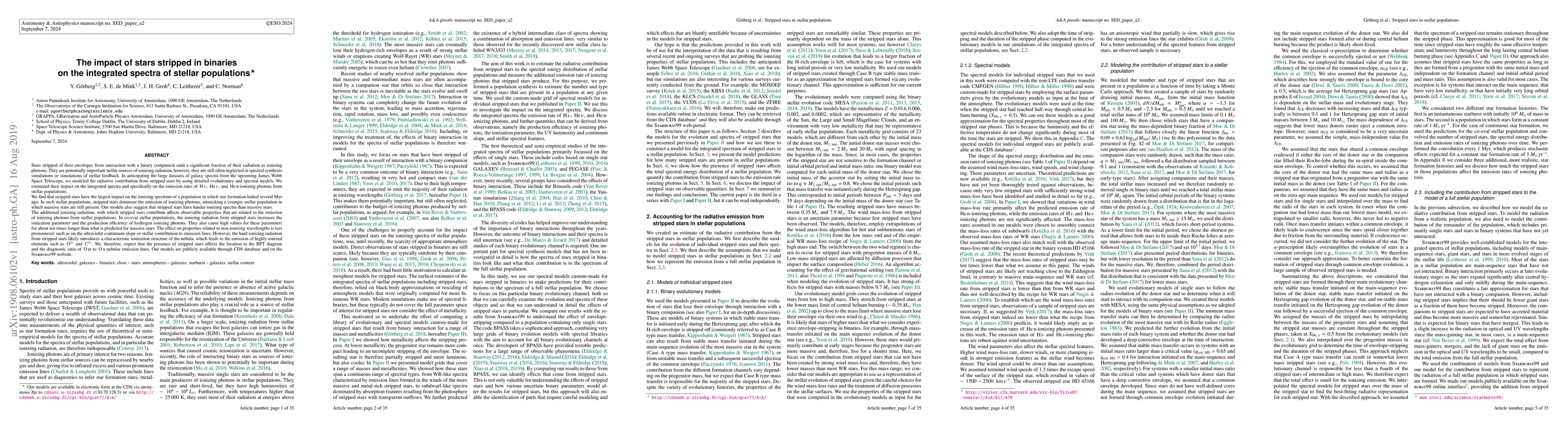 This paper investigates the impact of stars stripped of their envelopes in binary interactions on the integrated spectra of stellar populations, finding that these stripped stars significantly contribute to the emission of ionizing photons, especially in populations where star formation has ceased several Myr ago. The study shows that stripped stars dominate ionizing photon emission and have harder spectra than massive stars, affecting the ionization parameter and production efficiency of HI-ionizing photons, and influencing the BPT diagram and diagnostic ratios of nebular emission lines.