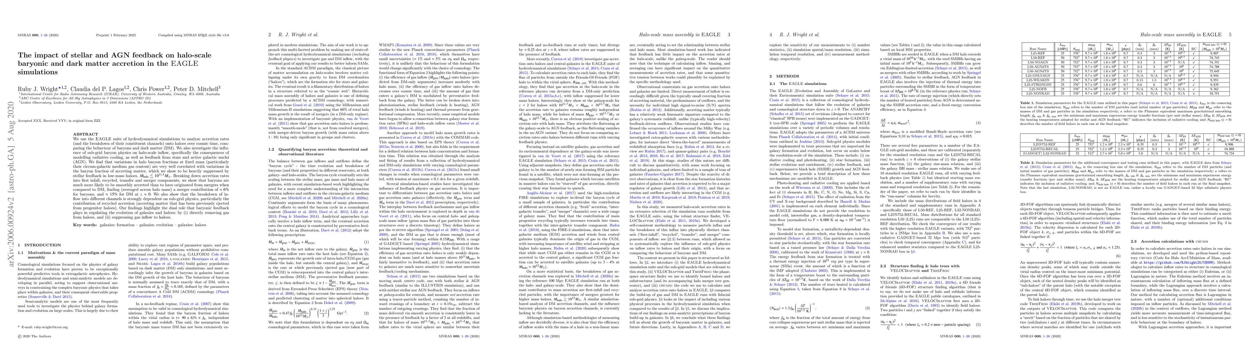This paper examines the EAGLE simulations to analyze the accretion rates of baryons and dark matter in haloes over cosmic time, focusing on the effects of stellar and AGN feedback. It finds that stellar feedback significantly suppresses baryon accretion in low-mass haloes, while the merger contribution to baryon accretion is much lower compared to dark matter. The study highlights the crucial role of baryonic feedback in regulating galaxy and halo evolution.