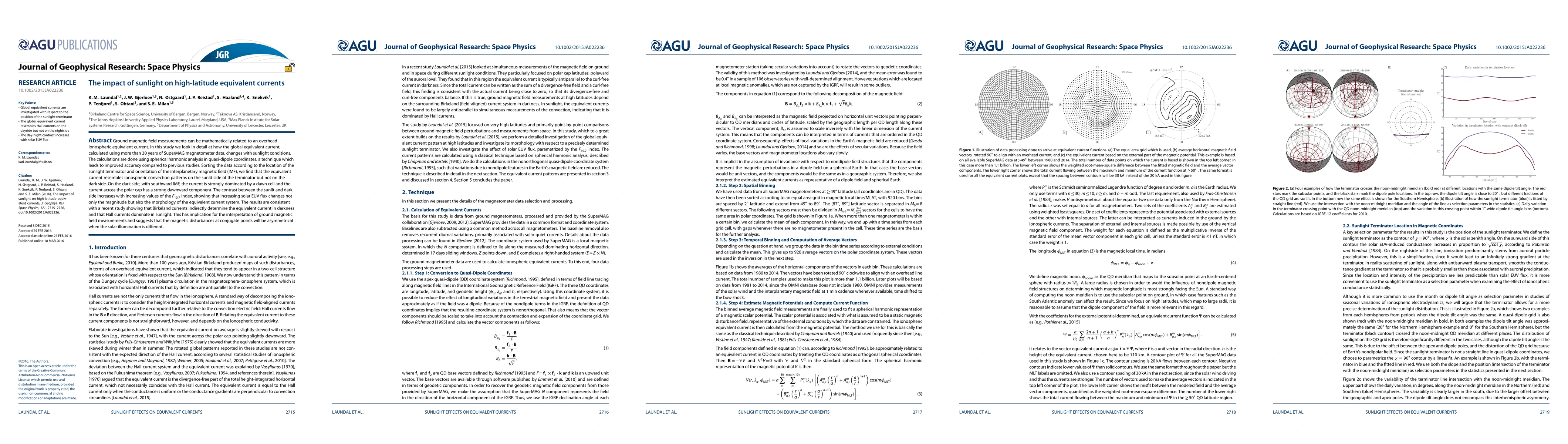 The study found that sunlight affects the shape and strength of high-latitude equivalent currents, with stronger effects on darker days; it also suggests asymmetrical magnetic disturbances at conjugate points under different solar illumination conditions.