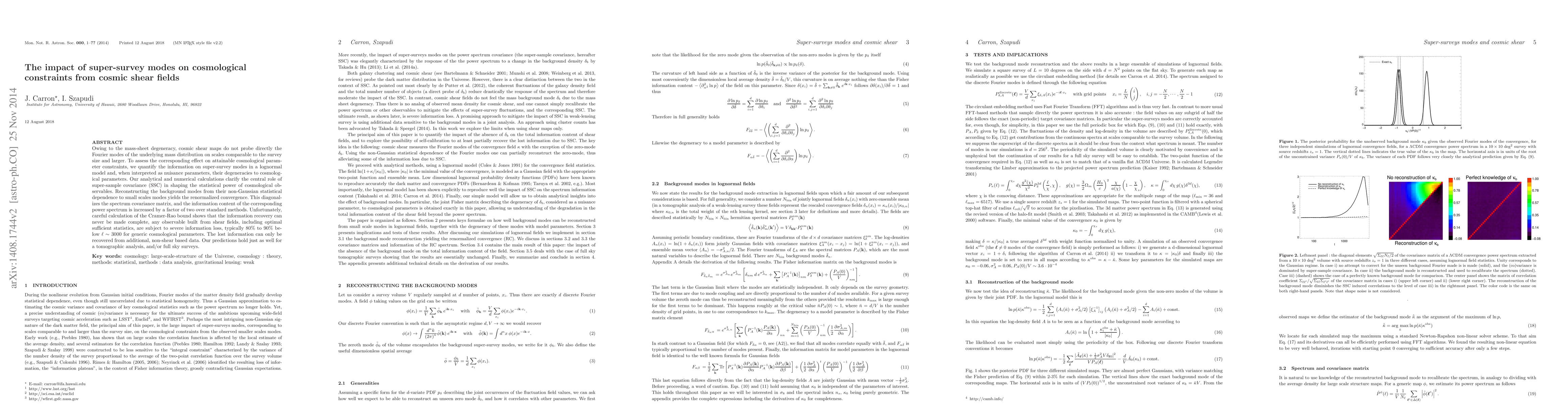 Owing to the mass-sheet degeneracy, cosmic shear maps do not probe directly the Fourier modes of the underlying mass distribution on scales comparable to the survey size and larger. To assess the corresponding effect on attainable cosmological parameter constraints, we quantify the information on super-survey modes in a lognormal model and, when interpreted as nuisance parameters, their degeneracies to cosmological parameters. Our analytical and numerical calculations clarify the central role of super-sample covariance (SSC) in shaping the statistical power of cosmological observables. Reconstructing the background modes from their non-Gaussian statistical dependence to small scales modes yields the renormalized convergence. This diagonalizes the spectrum covariance matrix, and the information content of the corresponding power spectrum is increased by a factor of two over standard methods. Unfortunately, careful calculation of the Cramer-Rao bound shows that the information recovery can never be made complete, any observable built from shear fields, including optimal sufficient statistics, are subject to severe information loss, typically $80\%$ to $90\%$ below $\ell \sim 3000$ for generic cosmological parameters. The lost information can only be recovered from additional, non-shear based data. Our predictions hold just as well for a tomographic analysis, and/or full sky surveys.