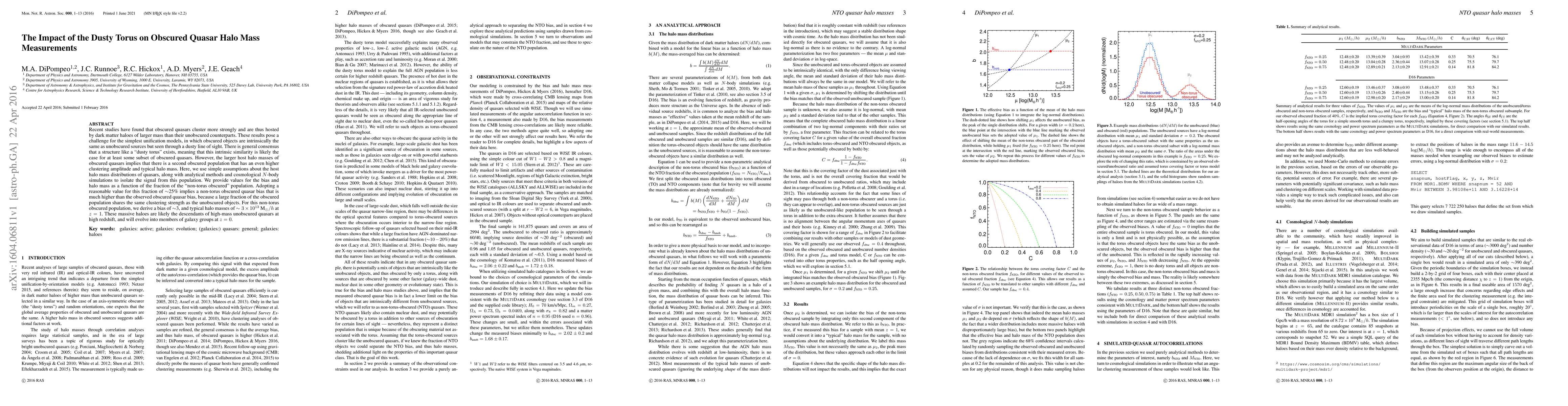 This paper investigates the impact of a "dusty torus" on measurements of obscured quasars' host halo masses, revealing a second population with higher clustering and typical halo masses of $\sim3\times10^{13}$ M$_{\odot}/h$ at $z=1$, suggesting these quasars originate from high-mass unobscured quasars at high redshift.