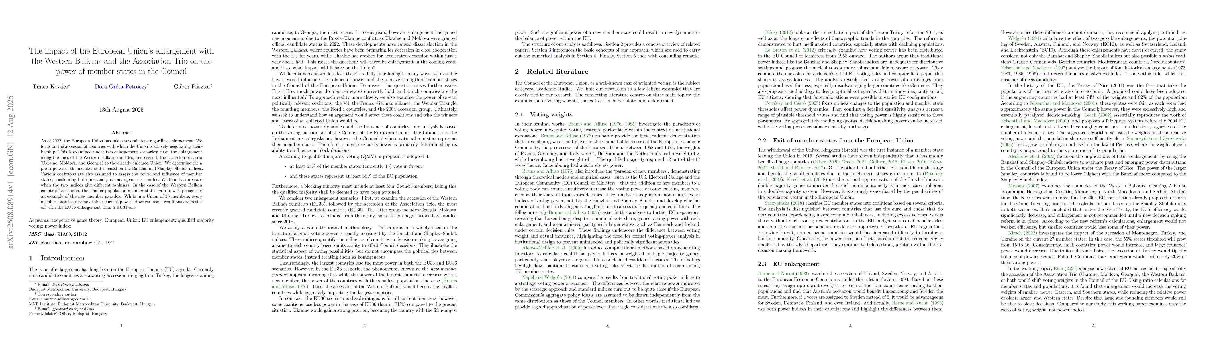 As of 2022, the European Union has taken several steps regarding enlargement. We focus on the accession of countries with which the Union is actively negotiating membership. This is examined under two enlargement scenarios: first, the enlargement along the lines of the Western Balkan countries, and second, the accession of a trio (Ukraine, Moldova, and Georgia) to the already enlarged Union. We determine the a priori power of the member states based on the Banzhaf and Shapley--Shubik indices. Various coalitions are also assumed to assess the power and influence of member states, considering both pre- and post-enlargement scenarios. We found a rare case when the two indices give different rankings. In the case of the Western Balkan countries' accession, the smaller population member states gain power, presenting an example of the new member paradox. While in a Union of 36 members, every member state loses some of their current power. However, some coalitions are better off with the EU36 enlargement than a EU33 one.