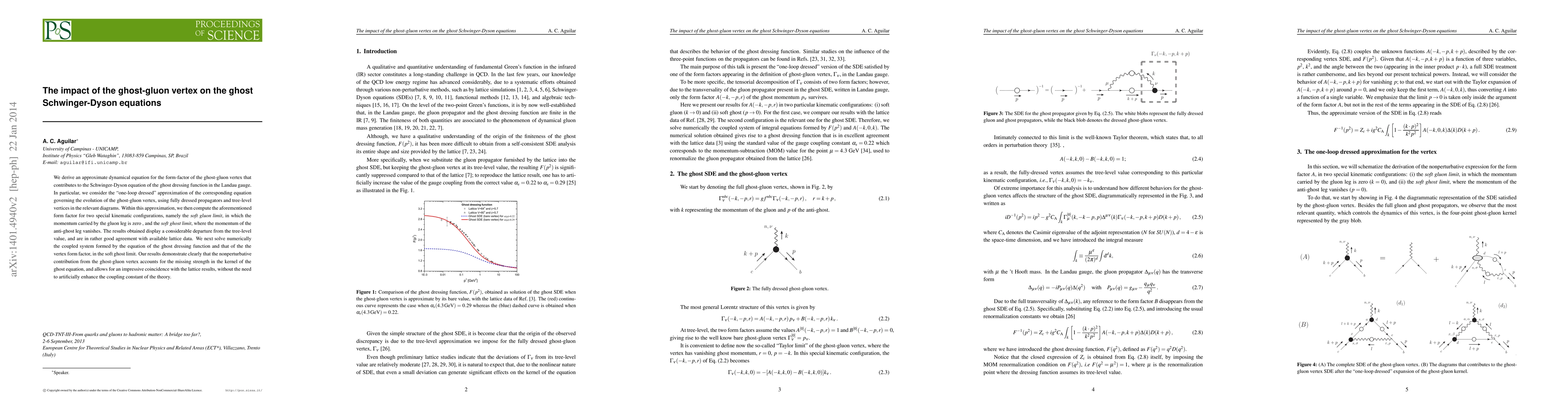 This paper derives an approximate dynamical equation for the ghost-gluon vertex's form factor, showing significant deviation from tree-level values and good agreement with lattice data. The study reveals that the nonperturbative contribution from the ghost-gluon vertex resolves the missing strength in the ghost equation, aligning well with lattice results without adjusting the coupling constant.