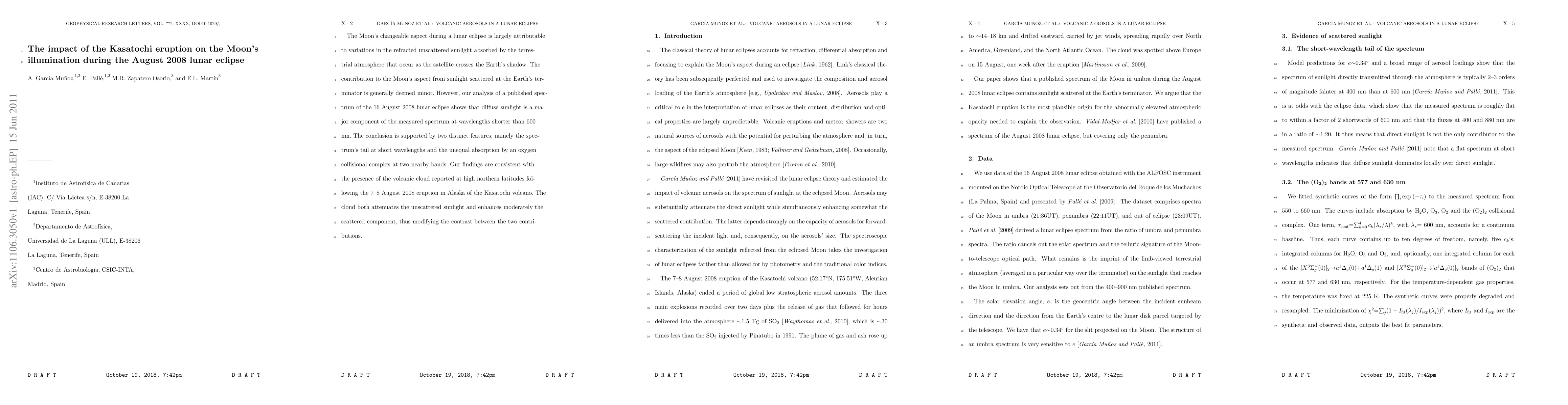 The Kasatochi volcano eruption in 2008 affected the Moon's illumination during a lunar eclipse by altering the amount of diffuse sunlight reaching it, according to a recent analysis of spectrum data from the August 16, 2008 event.
