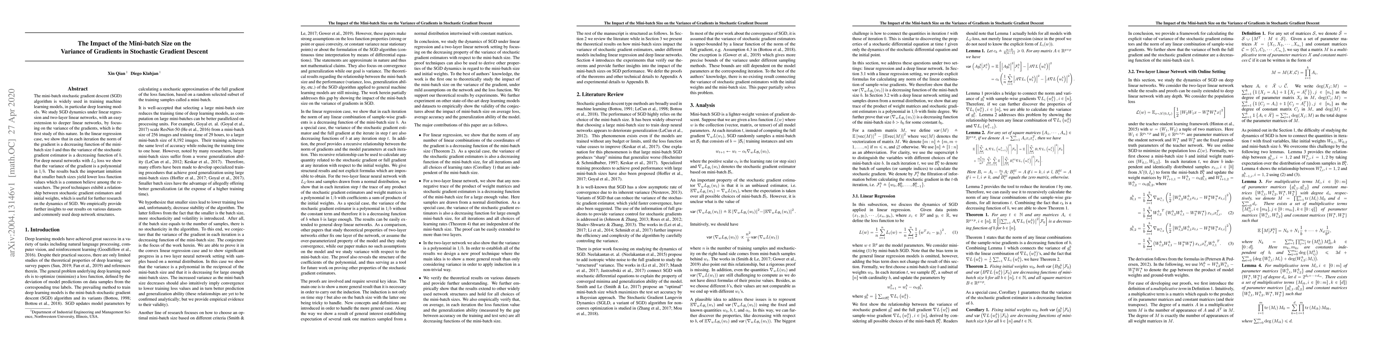 This paper investigates how mini-batch size affects the variance of gradients in stochastic gradient descent, demonstrating that larger mini-batch sizes reduce gradient variance in linear regression and deep networks. The findings support the intuition that smaller batch sizes lead to lower loss, with theoretical proofs linking gradient estimators to initial weights.