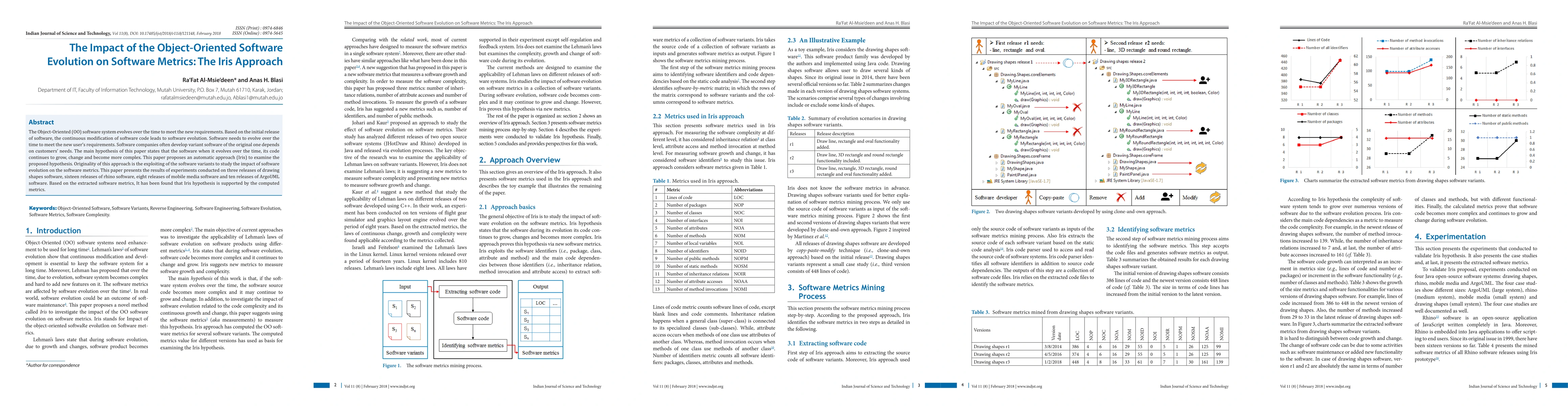 The Object-Oriented (OO) software system evolves over the time to meet the new requirements. Based on the initial release of software, the continuous modification of software code leads to software evolution. Software needs to evolve over the time to meet the new user's requirements. Software companies often develop variant software of the original one depends on customers' needs. The main hypothesis of this paper states that the software when it evolves over the time, its code continues to grow, change and become more complex. This paper proposes an automatic approach (Iris) to examine the proposed hypothesis. Originality of this approach is the exploiting of the software variants to study the impact of software evolution on the software metrics. This paper presents the results of experiments conducted on three releases of drawing shapes software, sixteen releases of rhino software, eight releases of mobile media software and ten releases of ArgoUML software. Based on the extracted software metrics, It has been found that Iris hypothesis is supported by the computed metrics.