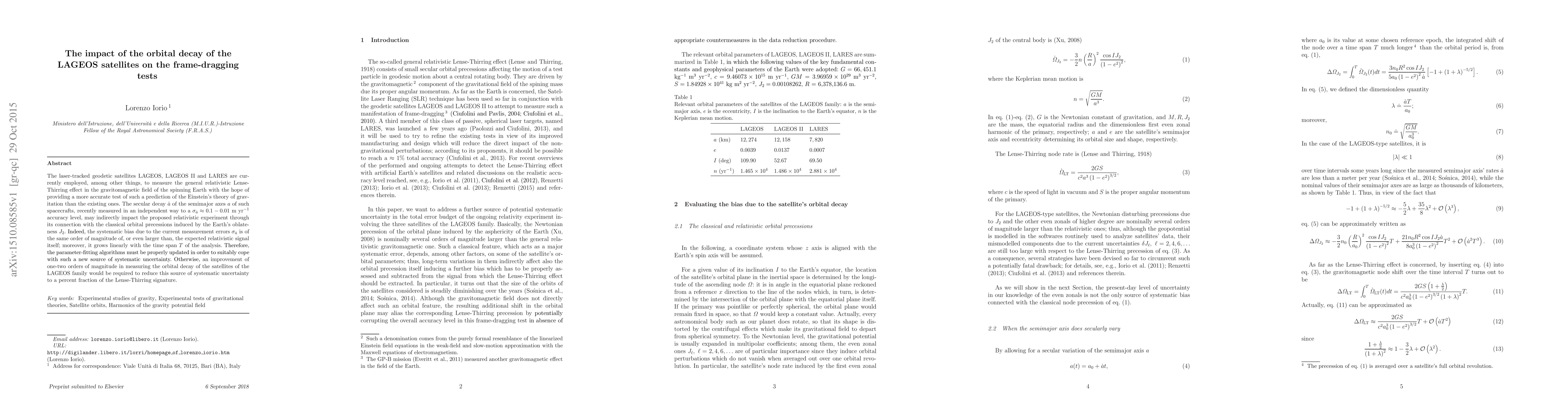 The laser-tracked geodetic satellites LAGEOS, LAGEOS II and LARES are currently employed, among other things, to measure the general relativistic Lense-Thirring effect in the gravitomagnetic field of the spinning Earth with the hope of providing a more accurate test of such a prediction of the Einstein's theory of gravitation than the existing ones. The secular decay $\dot a$ of the semimajor axes $a$ of such spacecrafts, recently measured in an independent way to a $\sigma_{\dot a}\approx 0.1-0.01$ m yr$^{-1}$ accuracy level, may indirectly impact the proposed relativistic experiment through its connection with the classical orbital precessions induced by the Earth's oblateness $J_2$. \textcolor{black}{Indeed,} the systematic bias due to the current measurement errors $\sigma_{\dot a}$ is of the same order of magnitude of, or even larger than, the expected relativistic signal itself; moreover, it grows linearly with the time span $T$ of the analysis. \textcolor{black}{Therefore, the parameter-fitting algorithms must be properly updated in order to suitably cope with such a new source of systematic uncertainty. Otherwise,} an improvement of one-two orders of magnitude in measuring the orbital decay of the satellites of the LAGEOS family would be required to reduce this source of systematic uncertainty to a percent fraction of the Lense-Thirring signature.