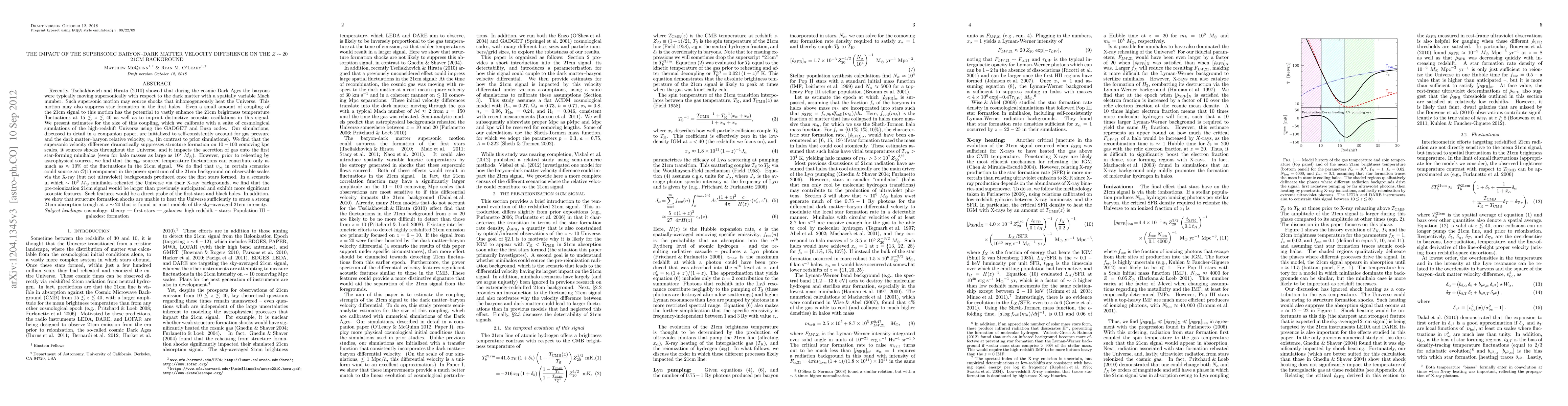 This paper investigates the effects of supersonic relative velocities between baryons and dark matter on the 21cm background at high redshifts. It finds that these velocities can suppress structure formation and heat the Universe, but only contribute ~10% to the 21cm brightness temperature fluctuations, while potentially enhancing the 21cm signal's power spectrum via X-ray backgrounds from the first stars.