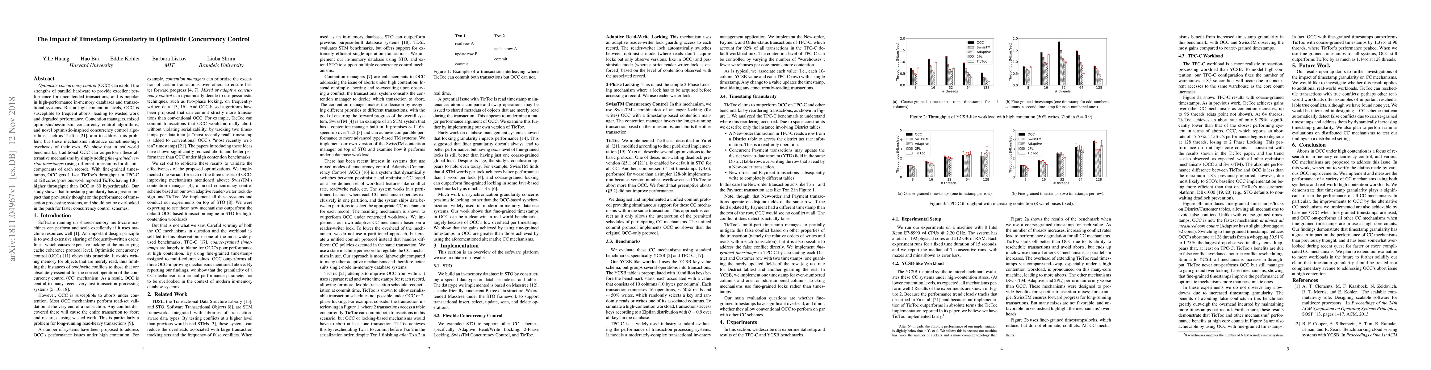 This paper demonstrates that fine-grained version timestamps in optimistic concurrency control (OCC) can significantly improve performance, outperforming mixed and novel concurrency control mechanisms like TicToc in real-world benchmarks. The study highlights that timestamp granularity plays a crucial role in transaction processing system performance, challenging the preference for more complex concurrency control schemes.