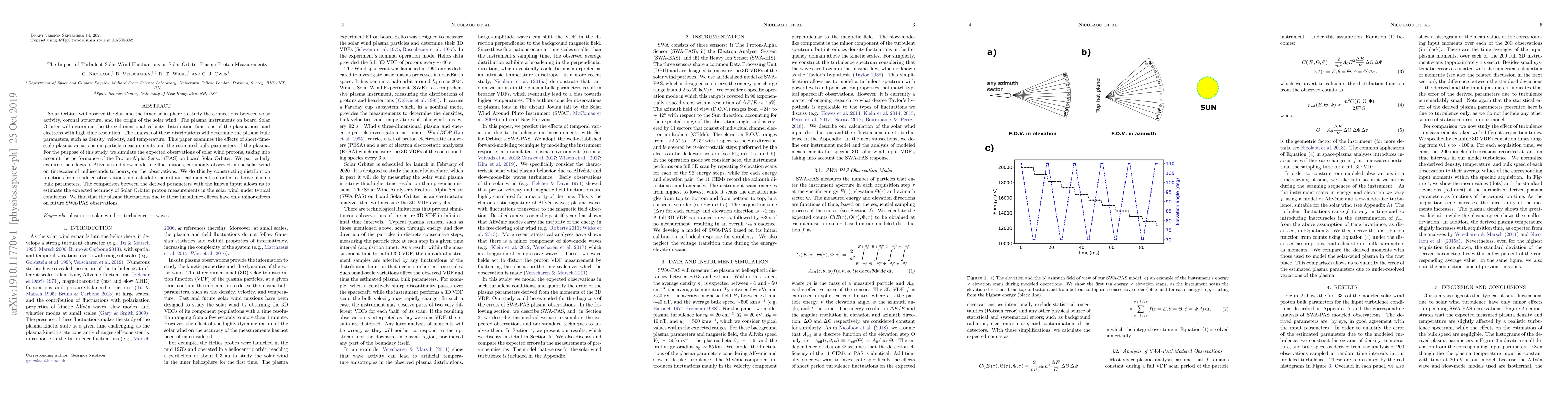 Solar Orbiter will observe the Sun and the inner heliosphere to study the connections between solar activity, coronal structure, and the origin of the solar wind. The plasma instruments on board Solar Orbiter will determine the three-dimensional velocity distribution functions of the plasma ions and electrons with high time resolution. The analysis of these distributions will determine the plasma bulk parameters, such as density, velocity, and temperature. This paper examines the effects of short-time-scale plasma variations on particle measurements and the estimated bulk parameters of the plasma. For the purpose of this study, we simulate the expected observations of solar wind protons, taking into account the performance of the Proton-Alpha Sensor (PAS) on board Solar Orbiter. We particularly examine the effects of Alfv\'enic and slow-mode-like fluctuations, commonly observed in the solar wind on timescales of milliseconds to hours, on the observations. We do this by constructing distribution functions from modeled observations and calculate their statistical moments in order to derive plasma bulk parameters. The comparison between the derived parameters with the known input allows us to estimate the expected accuracy of Solar Orbiter proton measurements in the solar wind under typical conditions. We find that the plasma fluctuations due to these turbulence effects have only minor effects on future SWA-PAS observations