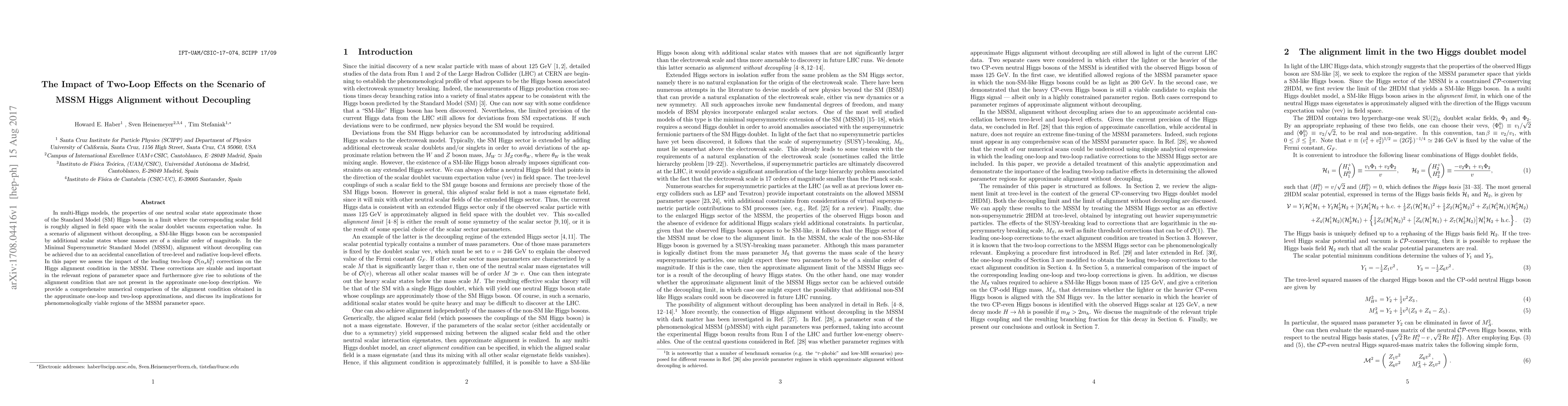 This paper examines the influence of two-loop corrections on the Higgs alignment scenario in the MSSM without decoupling, revealing significant impacts that generate new alignment solutions not seen in one-loop approximations. The findings have implications for the viable parameter regions in the MSSM.