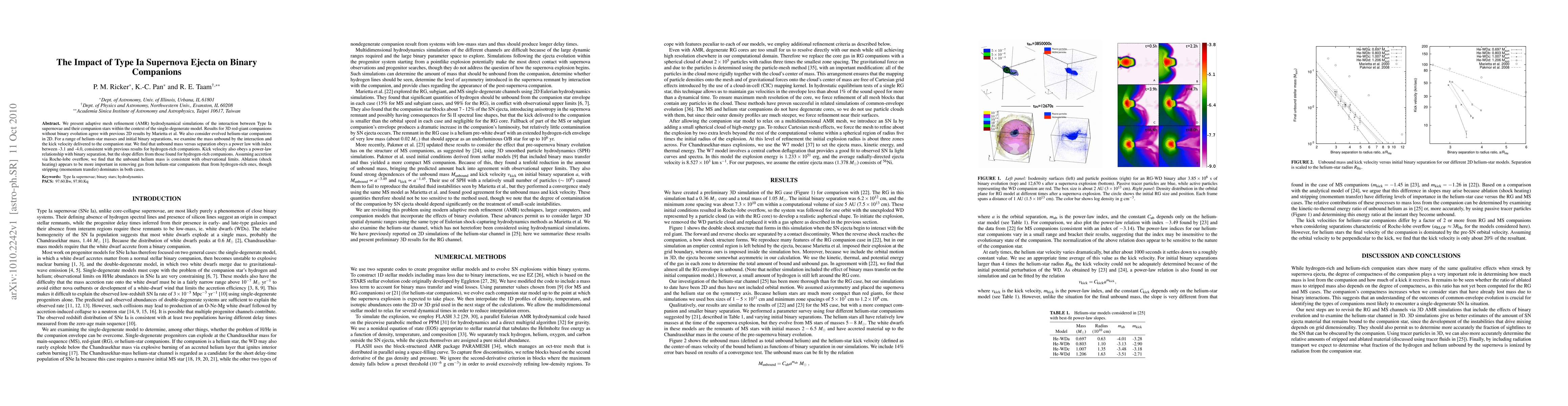 This study uses adaptive mesh refinement simulations to analyze the interaction between Type Ia supernovae and their binary companions, particularly red-giant and helium-star companions. It finds that the unbound mass and kick velocity from these interactions follow power-law relationships with binary separation, with ablation playing a more significant role in helium-star companions compared to hydrogen-rich ones.