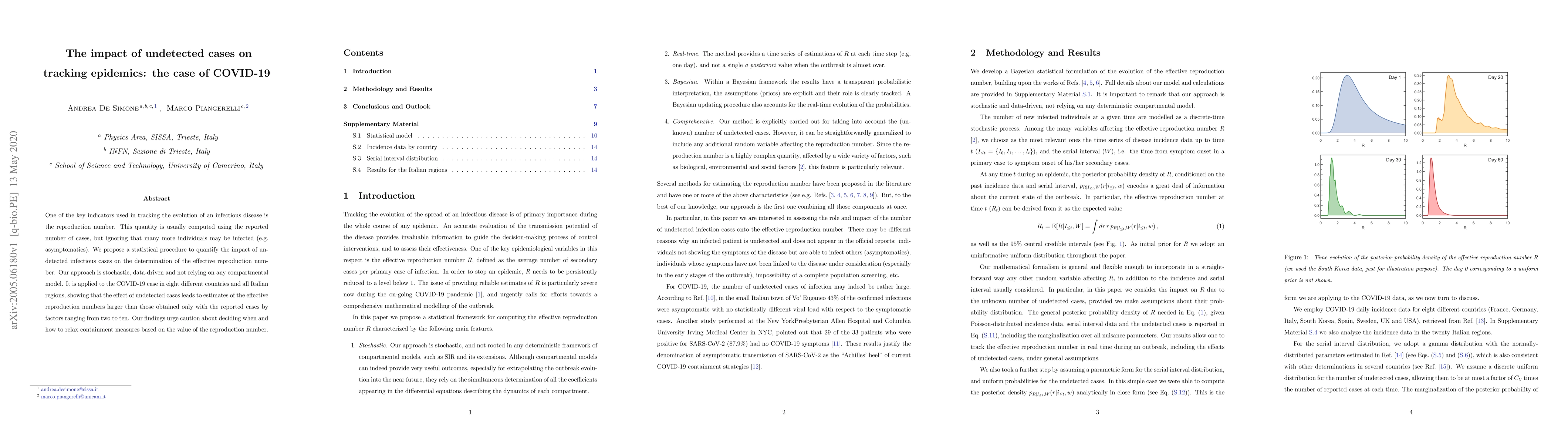 One of the key indicators used in tracking the evolution of an infectious disease isthe reproduction number. This quantity is usually computed using the reportednumber of cases, but ignoring that many more individuals may be infected (e.g.asymptomatics). We propose a statistical procedure to quantify the impact of un-detected infectious cases on the determination of the effective reproduction number. Our approach is stochastic, data-driven and not relying on any compartmentalmodel. It is applied to the COVID-19 case in eight different countries and all Italianregions, showing that the effect of undetected cases leads to estimates of the effective reproduction numbers larger than those obtained only with the reported cases by factors ranging from two to ten. Our findings urge caution about deciding when and how to relax containment measures based on the value of the reproduction number.