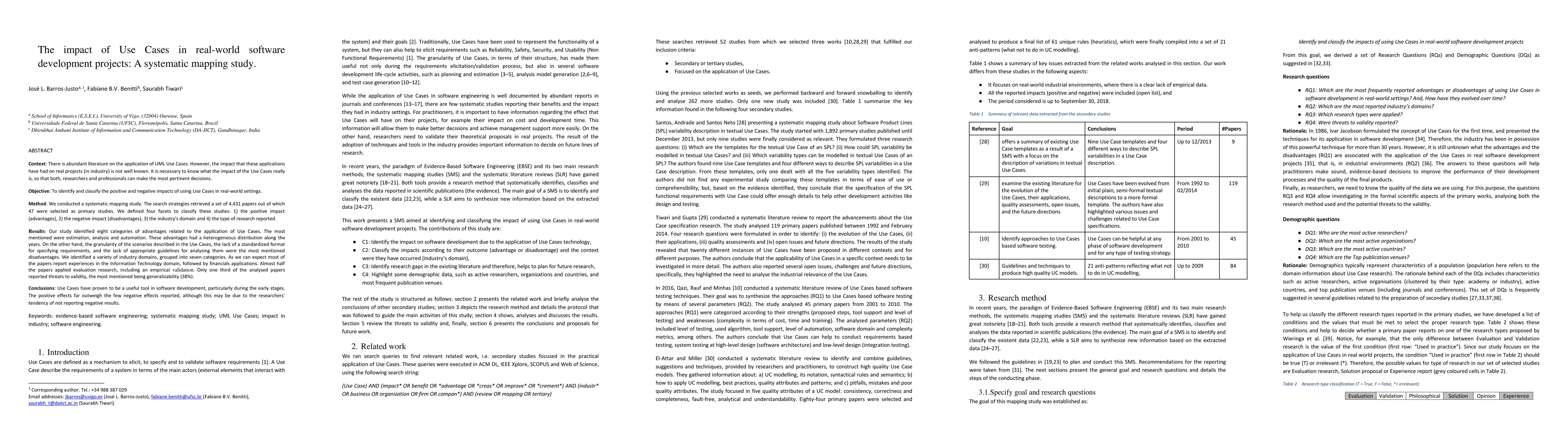 A systematic mapping study found that Use Cases have a positive impact on software development, particularly in estimation, analysis, and automation, with fewer negative impacts reported. The study also identified common challenges, such as the lack of standardization and guidelines for Use Case analysis.