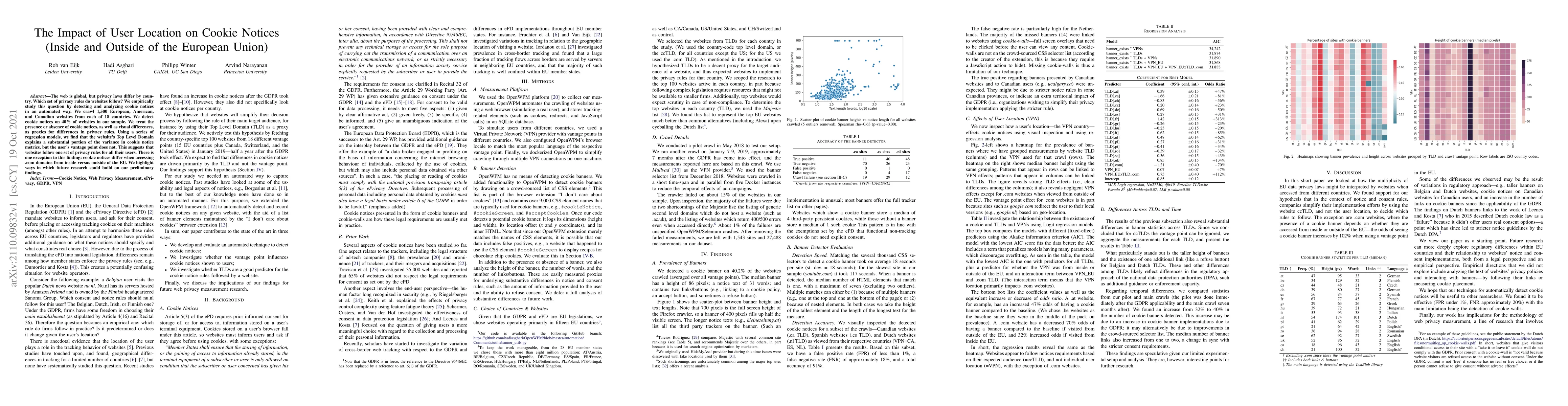 This study investigates how user location influences the display of cookie notices on websites, finding that while Top Level Domains significantly affect cookie notices, user location generally does not, except for .com domains accessed from within versus outside the EU. Future research could explore these exceptions in more depth.