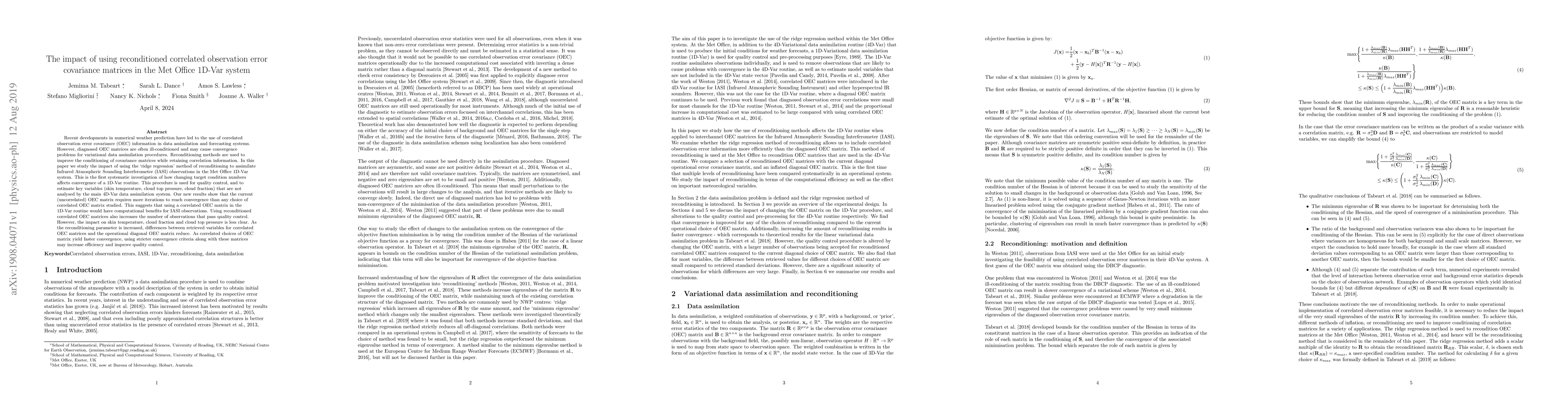 This paper investigates the impact of reconditioned correlated observation error covariance matrices on the Met Office 1D-Var system, finding that they improve convergence and quality control for IASI observations compared to the current uncorrelated matrix. While the effect on retrieved variables is less clear, stricter convergence criteria may enhance efficiency and quality control.