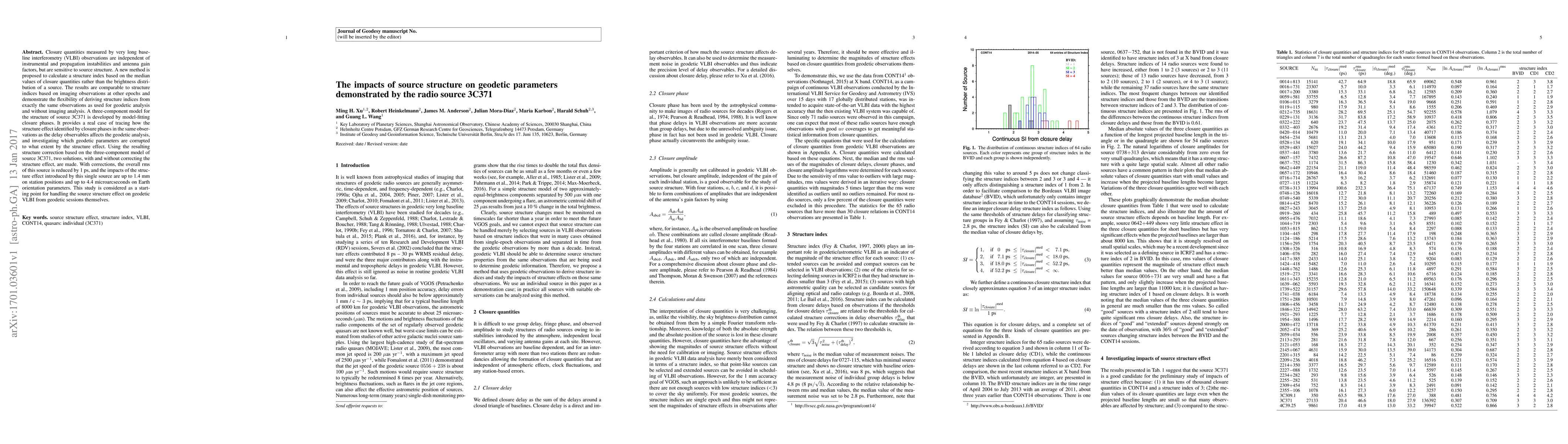 The research introduces a novel method to calculate a source structure index using VLBI closure quantities, independent of imaging analysis. Applying this to radio source 3C371, it shows that correcting structure effects reduces position errors by 1 ps and impacts on Earth orientation parameters by up to 4.4 microarcseconds, marking a step towards managing source structure effects in geodetic VLBI analysis.