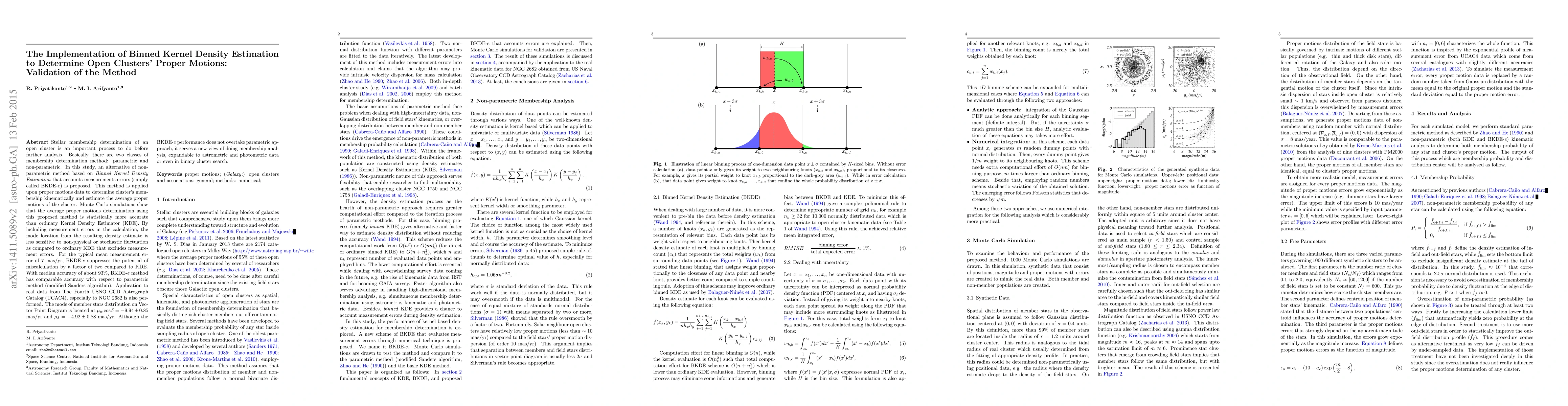 A new method using Binned Kernel Density Estimation with measurement errors (BKDE-e) accurately determines open cluster membership and proper motions, showing comparable accuracy to parametric methods and a potential for wider application in astrometry and photometry.