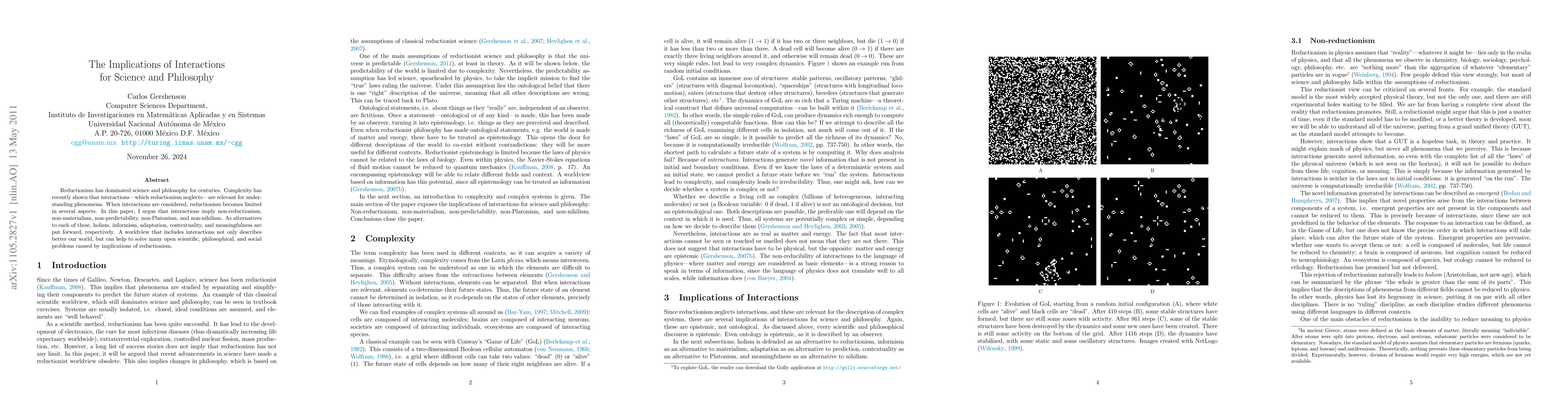 Reductionism has dominated science and philosophy for centuries. Complexity has recently shown that interactions---which reductionism neglects---are relevant for understanding phenomena. When interactions are considered, reductionism becomes limited in several aspects. In this paper, I argue that interactions imply non-reductionism, non-materialism, non-predictability, non-Platonism, and non-nihilism. As alternatives to each of these, holism, informism, adaptation, contextuality, and meaningfulness are put forward, respectively. A worldview that includes interactions not only describes better our world, but can help to solve many open scientific, philosophical, and social problems caused by implications of reductionism.