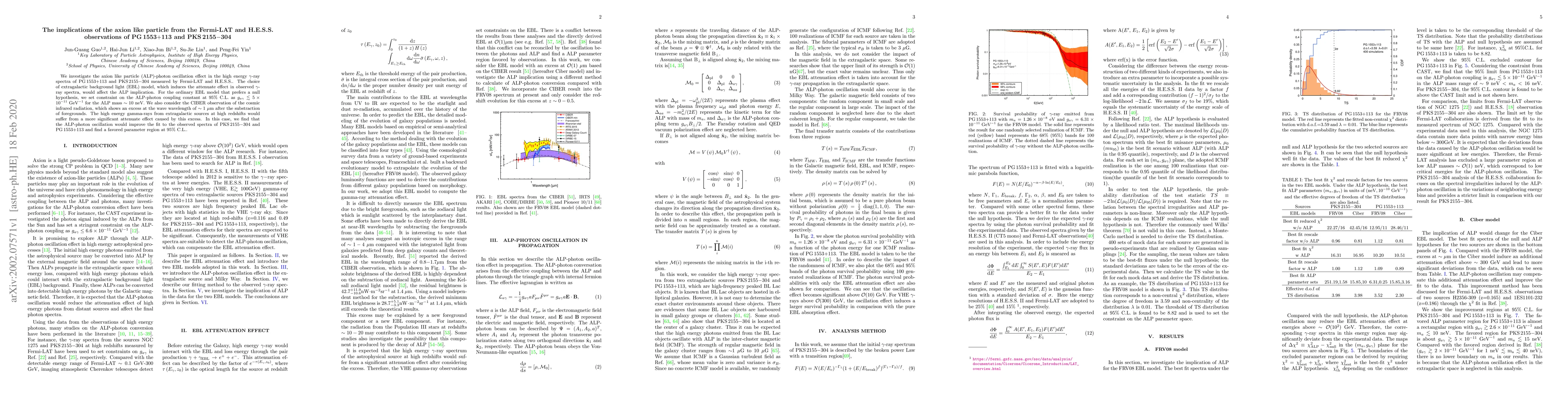 Researchers investigated axion-like particle implications in gamma-ray spectra of two active galactic nuclei using Fermi-LAT and H.E.S.S. data, finding a favored parameter region at 95% C.L.