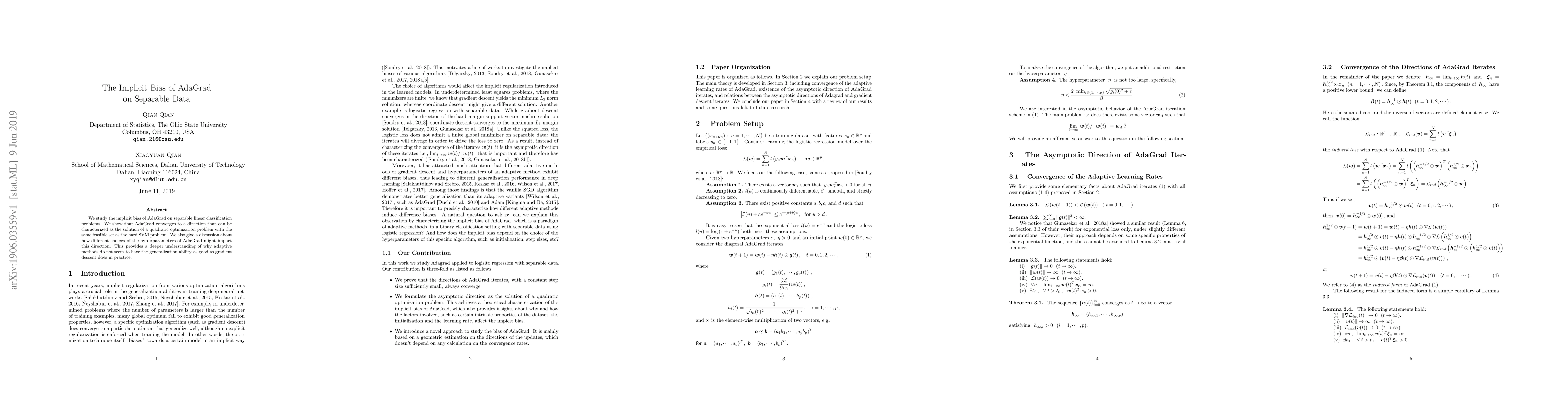 AdaGrad implicitly biases towards solutions that can be framed as quadratic optimization problems similar to hard SVMs for separable linear classification. The study also explores how AdaGrad's hyperparameters influence the convergence direction, shedding light on its limited generalization compared to gradient descent.