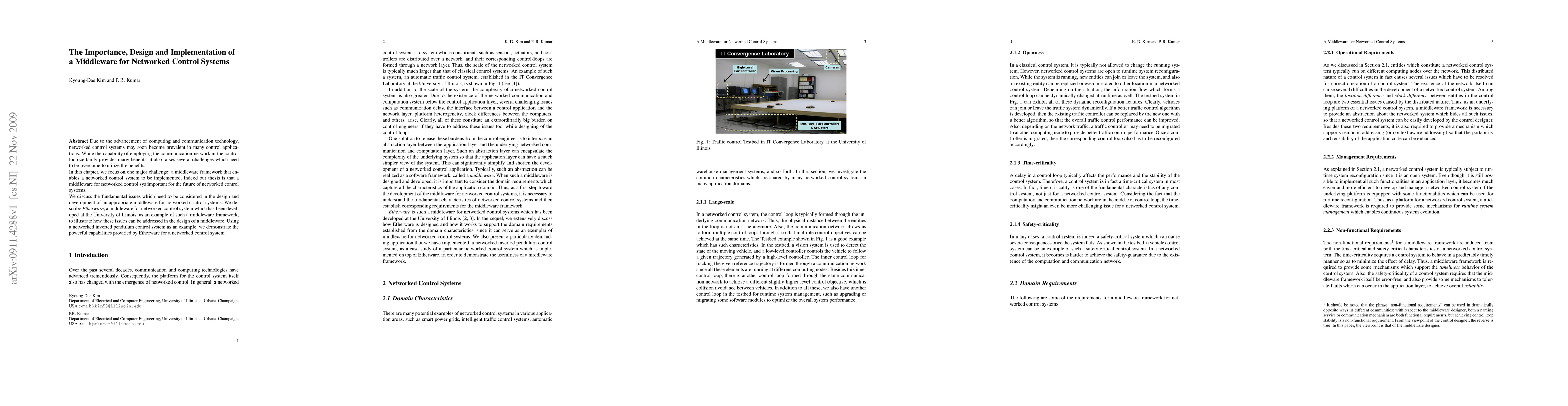 The paper discusses the importance, design, and implementation of a middleware for networked control systems, focusing on real-time scheduling theories and the Etherware middleware as an example.