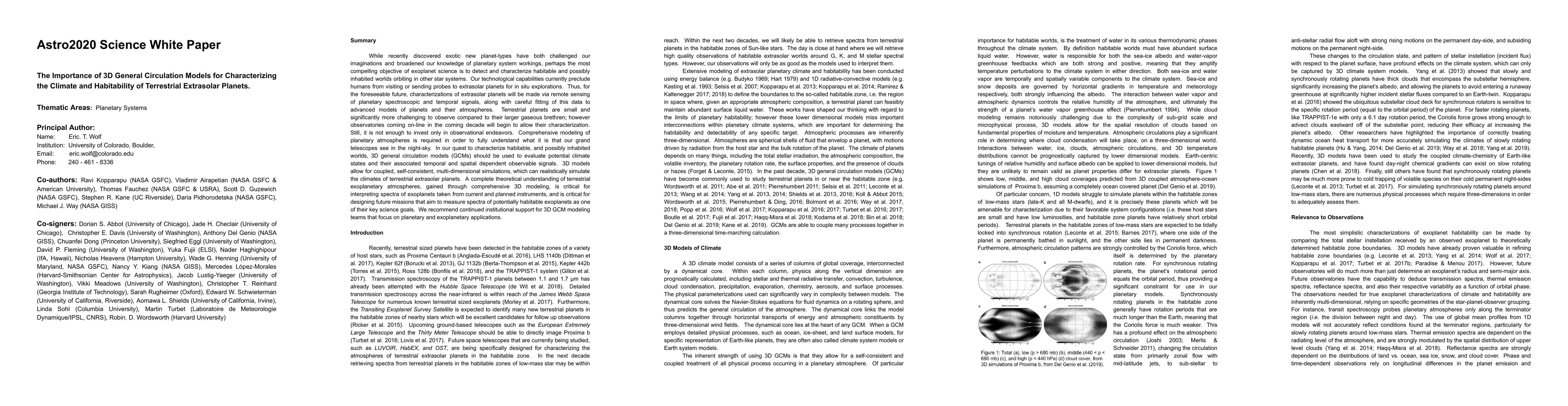 Researchers emphasize the importance of 3D general circulation models for characterizing the climate and habitability of terrestrial extrasolar planets, which will aid in interpreting exoplanet spectra and designing future missions.