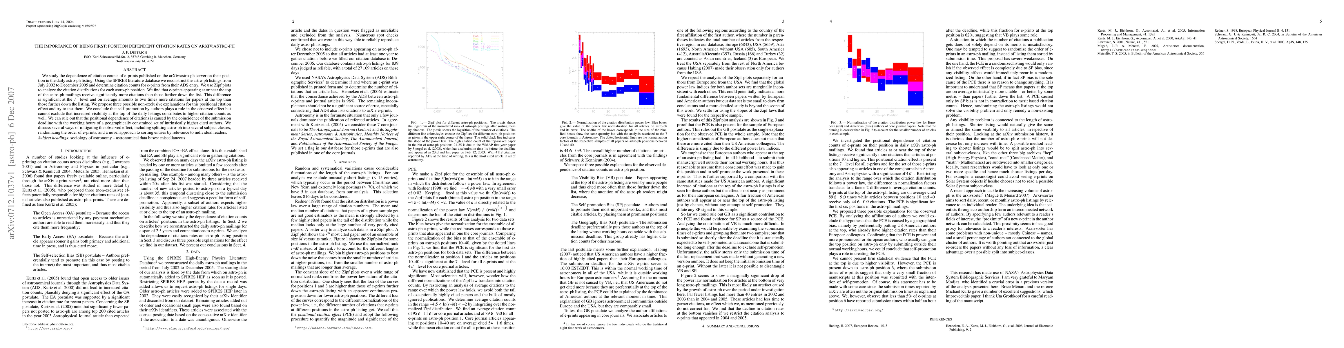 This paper investigates how the position of e-prints in the daily arXiv:astro-ph listings affects their citation rates, finding that top-listed papers receive significantly more citations. The authors propose potential explanations for this positional citation effect and suggest methods to mitigate it, such as randomizing order or sorting by relevance.