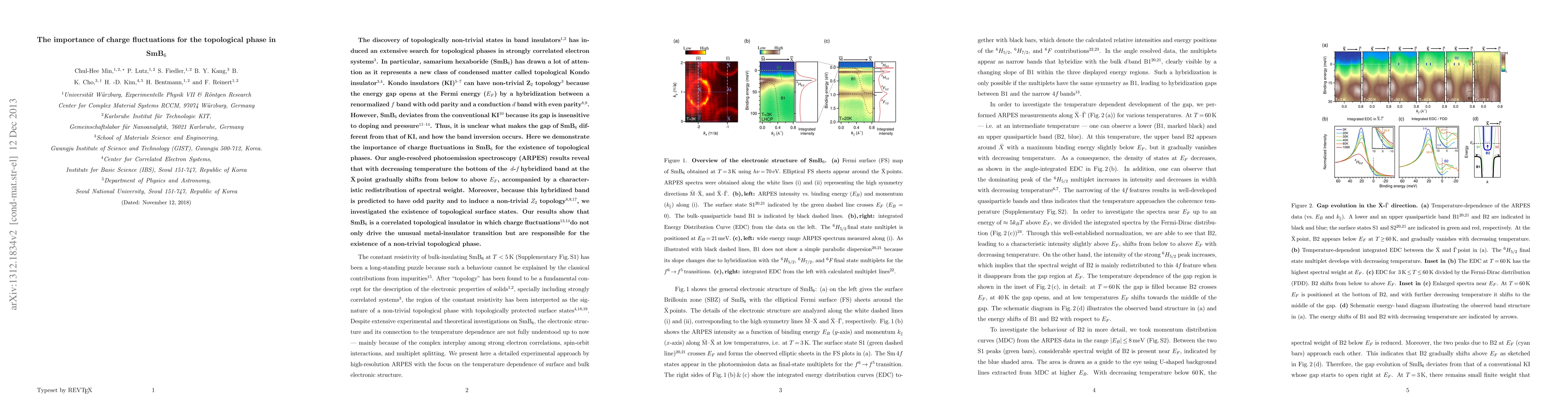 This research reveals that charge fluctuations play a crucial role in establishing the topological phase in samarium hexaboride (SmB$_6$), a material potentially classified as a topological Kondo insulator. Angle-resolved photoemission spectroscopy (ARPES) shows that the $d$-$f$ hybridized band shifts relative to the Fermi level with temperature, indicating a change in carrier density and localized $f$ electron count, which supports the material's non-trivial Z$_2$ topological properties.