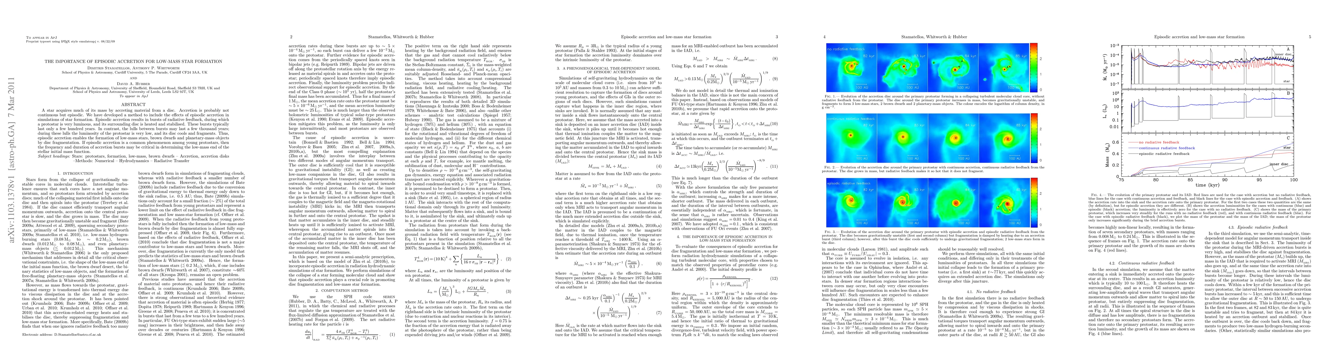 This paper explores how episodic accretion influences low-mass star formation, demonstrating that bursts of radiative feedback during accretion periods lead to the heating and stabilization of protostellar discs, while lulls between bursts allow discs to cool and fragment, facilitating the formation of low-mass stars and planetary-mass objects. The frequency and duration of these accretion bursts are crucial for determining the low-mass end of the stellar initial mass function.
