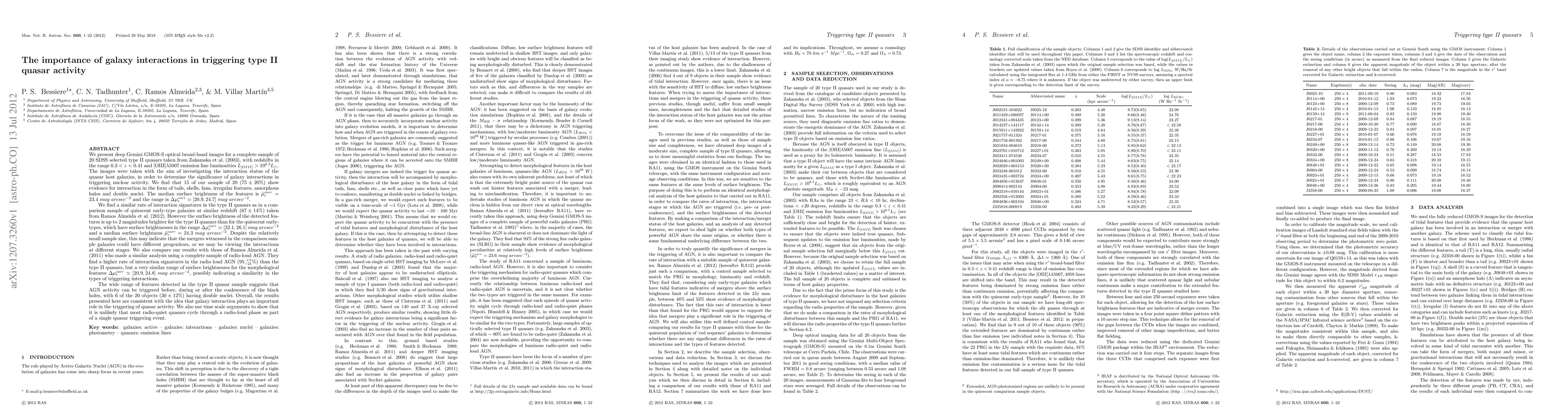 Galaxy interactions play a key role in triggering type II quasar activity, with 75% of studied quasars showing signs of interaction, including tails, shells, and double nuclei.