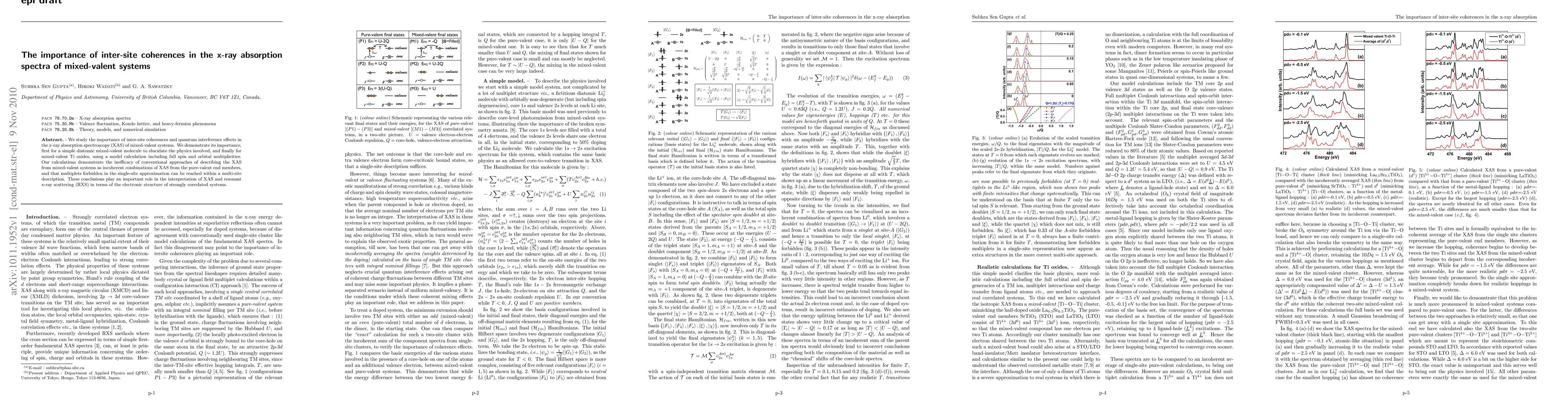We study the importance of inter-site coherences and quantum interference effects in the x-ray absorption spectroscopy (XAS) of mixed-valent systems. We demonstrate its importance, first for a simple diatomic mixed-valent molecule to elucidate the physics involved, and finally for mixed-valent Ti oxides, using a model calculation including full spin and orbital multiplicities. Our calculations demonstrate the inefficacy of conventional approaches of describing the XAS from mixed-valent systems as incoherent combinations of XAS from the pure-valent end members, and that multiplets forbidden in the single-site approximation can be reached within a multi-site description. These conclusions play an important role in the interpretation of XAS and resonant x-ray scattering (RXS) in terms of the electronic structure of strongly correlated systems.