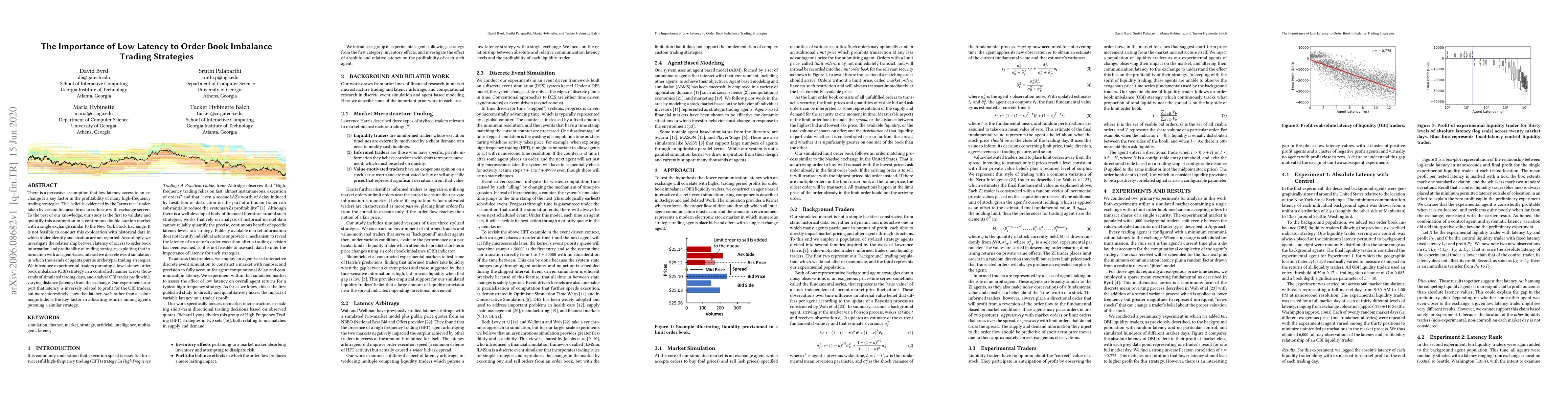 This study validates the critical role of low latency in high-frequency trading strategies, specifically for order book imbalance trading, using an agent-based simulation. The research finds that lower latency correlates with higher profitability, emphasizing that latency rank, rather than absolute latency, is crucial for return allocation among similar strategies.