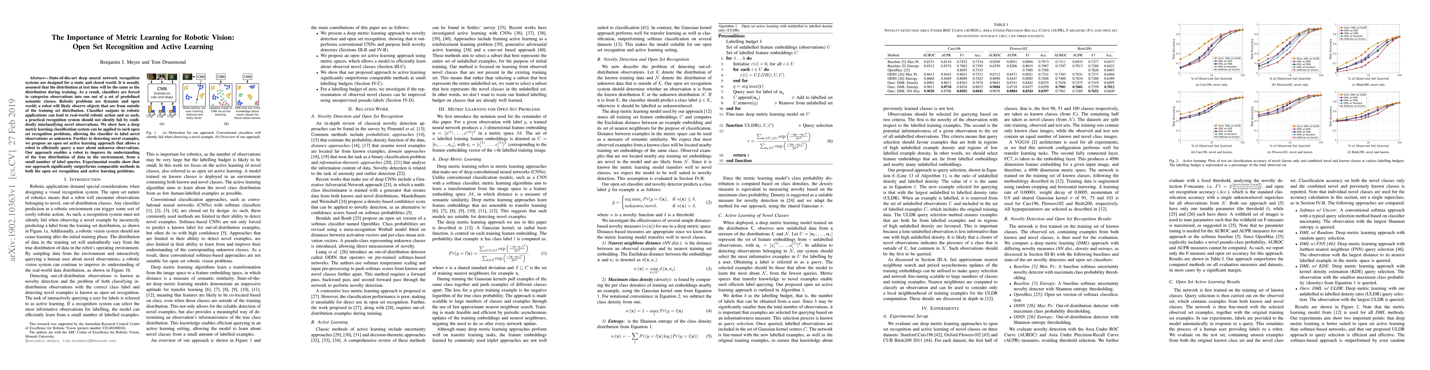 State-of-the-art deep neural network recognition systems are designed for a static and closed world. It is usually assumed that the distribution at test time will be the same as the distribution during training. As a result, classifiers are forced to categorise observations into one out of a set of predefined semantic classes. Robotic problems are dynamic and open world; a robot will likely observe objects that are from outside of the training set distribution. Classifier outputs in robotic applications can lead to real-world robotic action and as such, a practical recognition system should not silently fail by confidently misclassifying novel observations. We show how a deep metric learning classification system can be applied to such open set recognition problems, allowing the classifier to label novel observations as unknown. Further to detecting novel examples, we propose an open set active learning approach that allows a robot to efficiently query a user about unknown observations. Our approach enables a robot to improve its understanding of the true distribution of data in the environment, from a small number of label queries. Experimental results show that our approach significantly outperforms comparable methods in both the open set recognition and active learning problems.