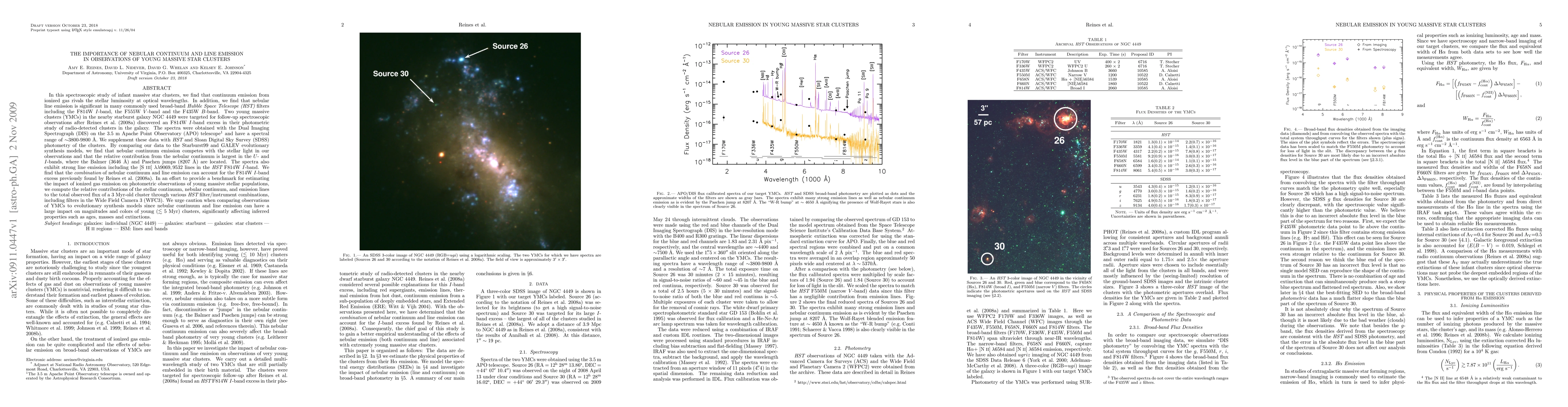 In this spectroscopic study of infant massive star clusters, we find that continuum emission from ionized gas rivals the stellar luminosity at optical wavelengths. In addition, we find that nebular line emission is significant in many commonly used broad-band HST filters including the F814W I-band, the F555W V-band and the F435W B-band. Two young massive clusters (YMCs) in NGC 4449 were targeted for spectroscopic observations after Reines et al. (2008a) discovered an F814W I-band excess in their photometric study of radio-detected clusters in the galaxy. The spectra were obtained with the Dual Imaging Spectrograph on the 3.5 m APO telescope. We supplement these data with HST and SDSS photometry. By comparing our data to the Starburst99 and GALEV models, we find that nebular continuum emission competes with the stellar light in our observations and that the relative contribution is largest in the U- and I-bands, where the Balmer and Paschen jumps are located. The spectra also exhibit strong line emission including the [SIII] 9069,9532 lines in the HST F814W I-band. We find that the combination of nebular continuum and line emission can account for the F814W I-band excess found by Reines et al. (2008a). In an effort to provide a benchmark for estimating the impact of ionized gas emission on photometric observations of YMCs, we compute the relative contributions of the stellar continuum, nebular continuum, and emission lines to the total flux of a 3 Myr-old cluster through various HST filter/instrument combinations, including filters in the WFC3. We urge caution when comparing observations of YMCs to evolutionary synthesis models since nebular emission can have a large impact on magnitudes and colors of young (< 5 Myr) clusters, significantly affecting inferred properties such as ages, masses and extinctions. (Abridged)