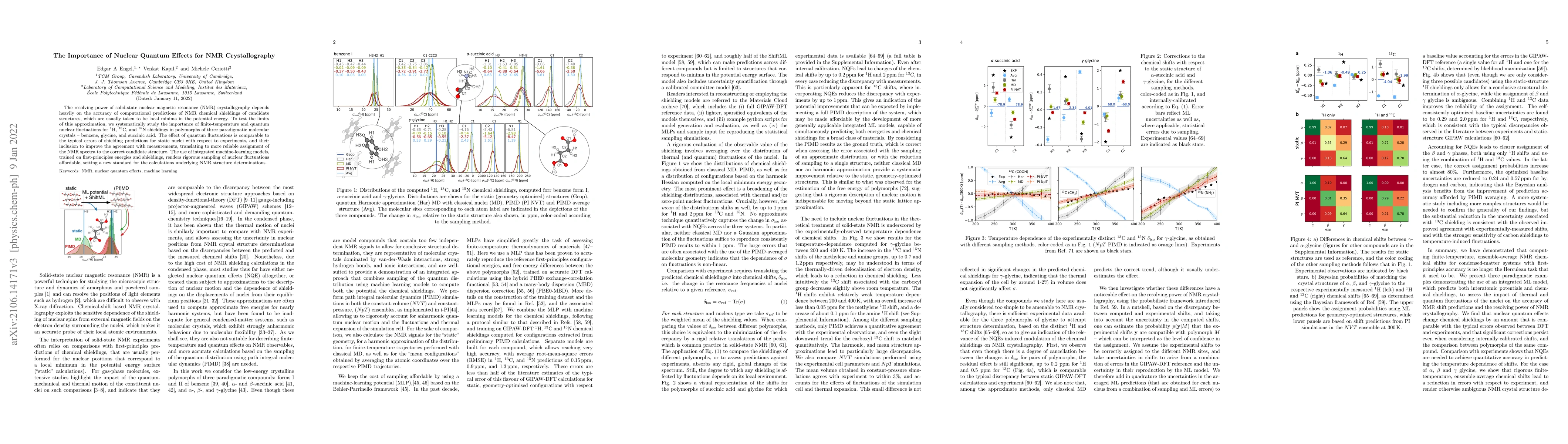 The resolving power of solid-state nuclear magnetic resonance (NMR) crystallography depends heavily on the accuracy of computational predictions of NMR chemical shieldings of candidate structures, which are usually taken to be local minima in the potential energy. To test the limits of this approximation, we systematically study the importance of finite-temperature and quantum nuclear fluctuations for $^1$H, $^{13}$C, and $^{15}$N shieldings in polymorphs of three paradigmatic molecular crystals -- benzene, glycine, and succinic acid. The effect of quantum fluctuations is comparable to the typical errors of shielding predictions for static nuclei with respect to experiments, and their inclusion to improve the agreement with measurements, translating to more reliable assignment of the NMR spectra to the correct candidate structure. The use of integrated machine-learning models, trained on first-principles energies and shieldings, renders rigorous sampling of nuclear fluctuations affordable, setting a new standard for the calculations underlying NMR structure determinations.